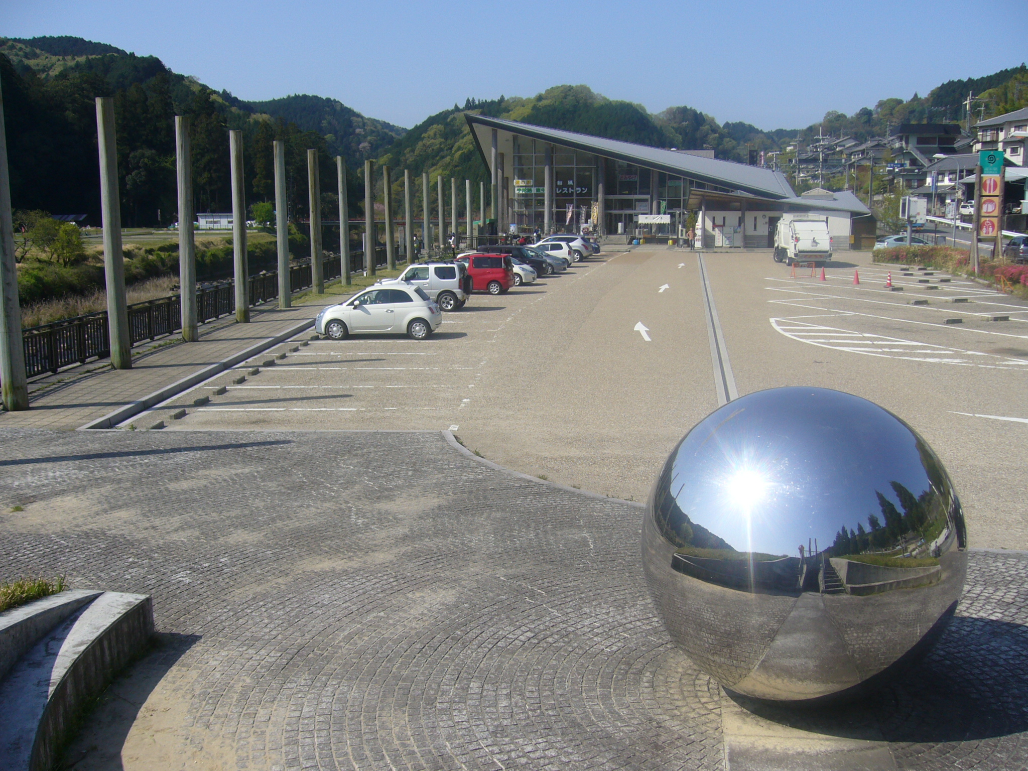 初瀬街道に戻ってさらに東進し、本日2本目の一本桜の「大野寺」に向かう。初瀬街道(国道165号)を名張方面に走らせ、榛原から先は宇陀になる。道の駅「宇陀路室生」にも情報収集とトイレ休憩で寄っていきます。室生出身の彫刻家・井上武吉によるモニュメント「my sky hole 地上への瞑想 室生(地の作品)」をはじめ施設全体が一体的にデザインされた道の駅です。