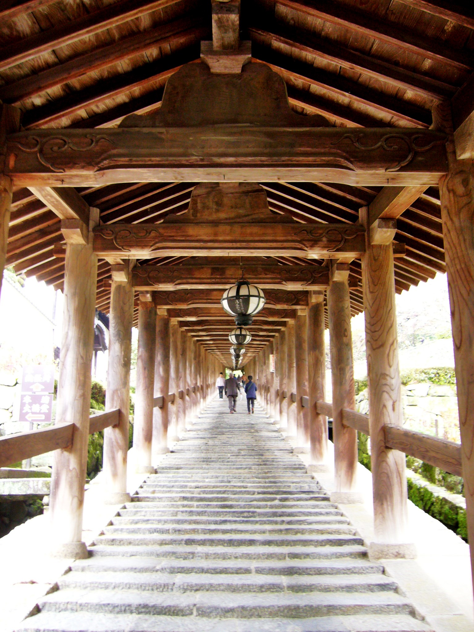 小初瀬山一つの山そのものが長谷寺のような造りになっているので、入口である仁王門も大きく豪華な造りで、この仁王門から本堂まで続く長い屋根付きの階段は、「登廊」と言われ399段あります。段数だけ聞くと躊躇しそうですが、最初は緩やかな段が続くので大丈夫です。吊るされている灯籠は、長谷型と呼ばれる独特な形で仄かな光の列が幽玄な雰囲気を醸し出している。