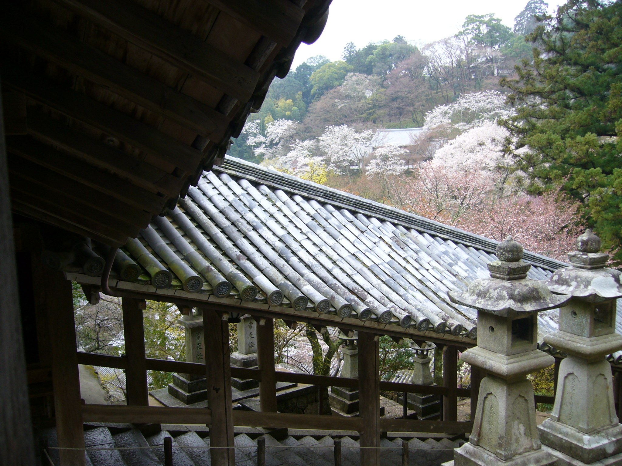 ソメイヨシノをはじめとする境内に見られる一目3000本と言われるここの桜は、境内に建つ重文の仁王門や緩やかに続く399段の回廊形式の登廊や