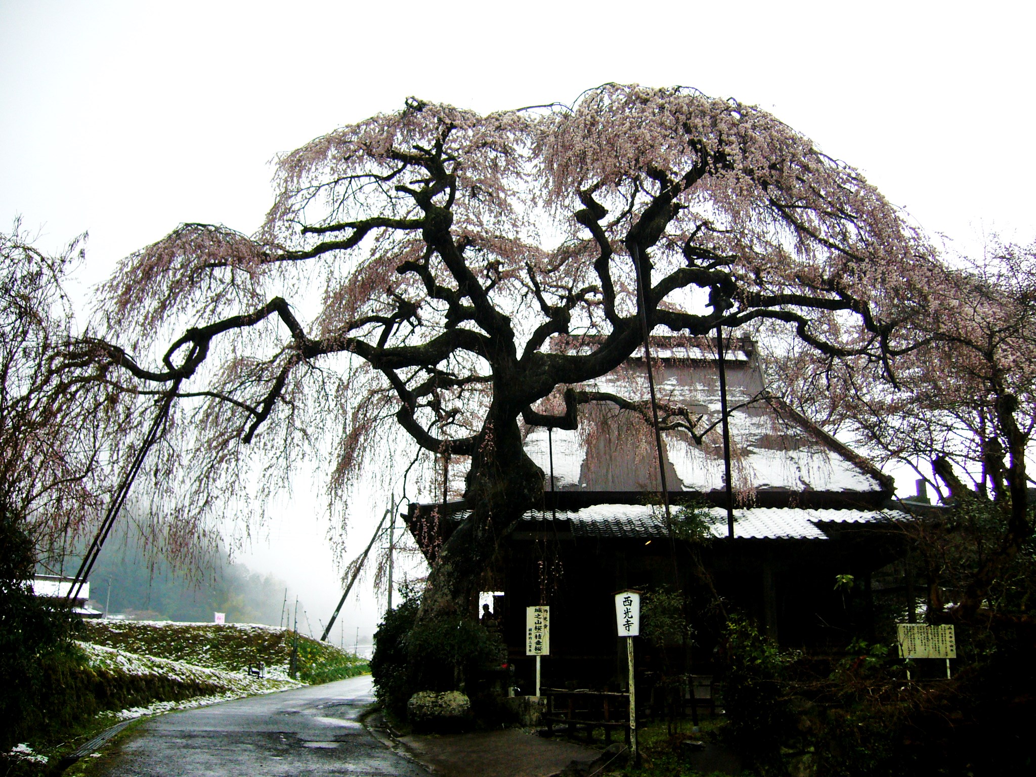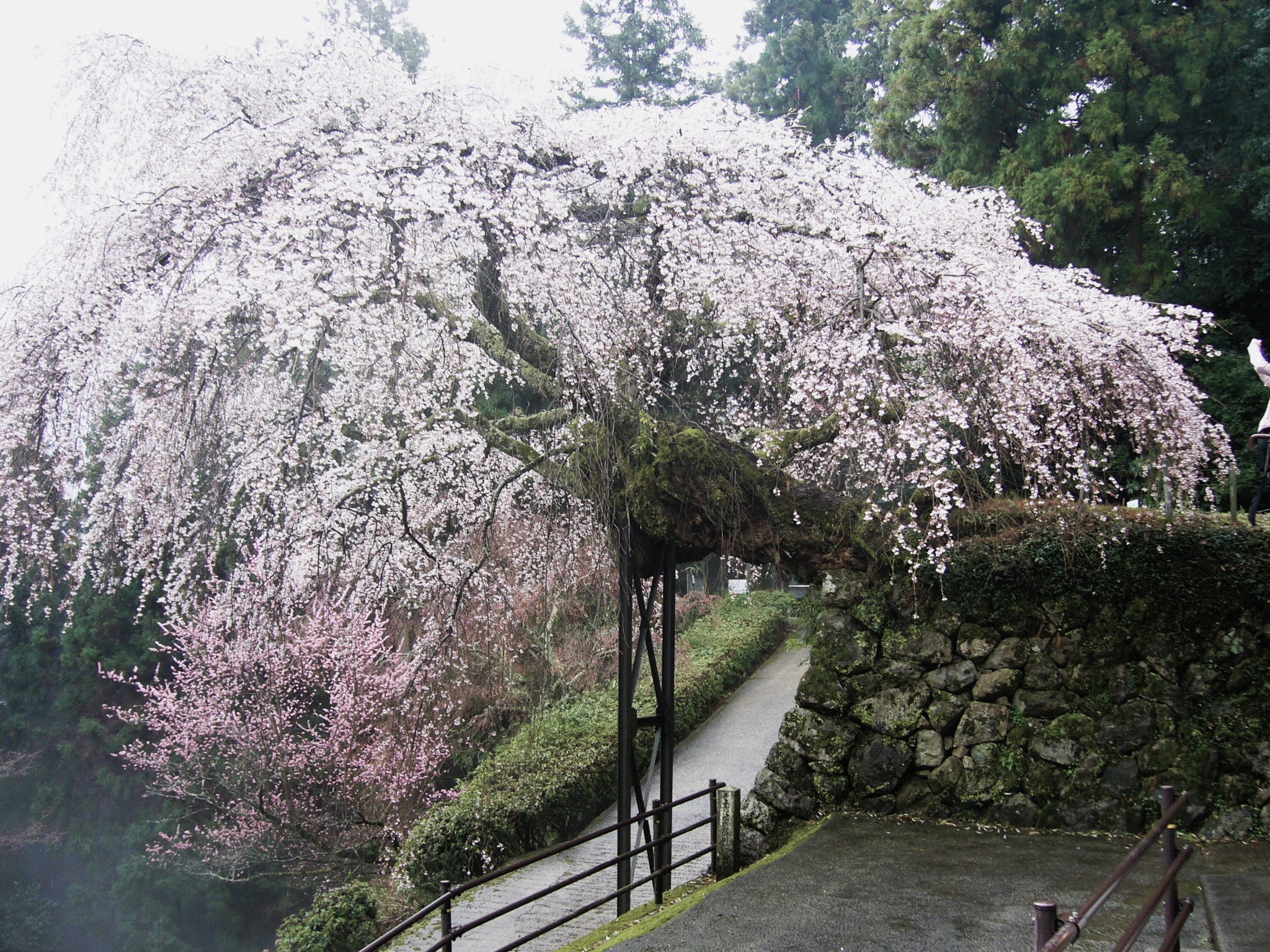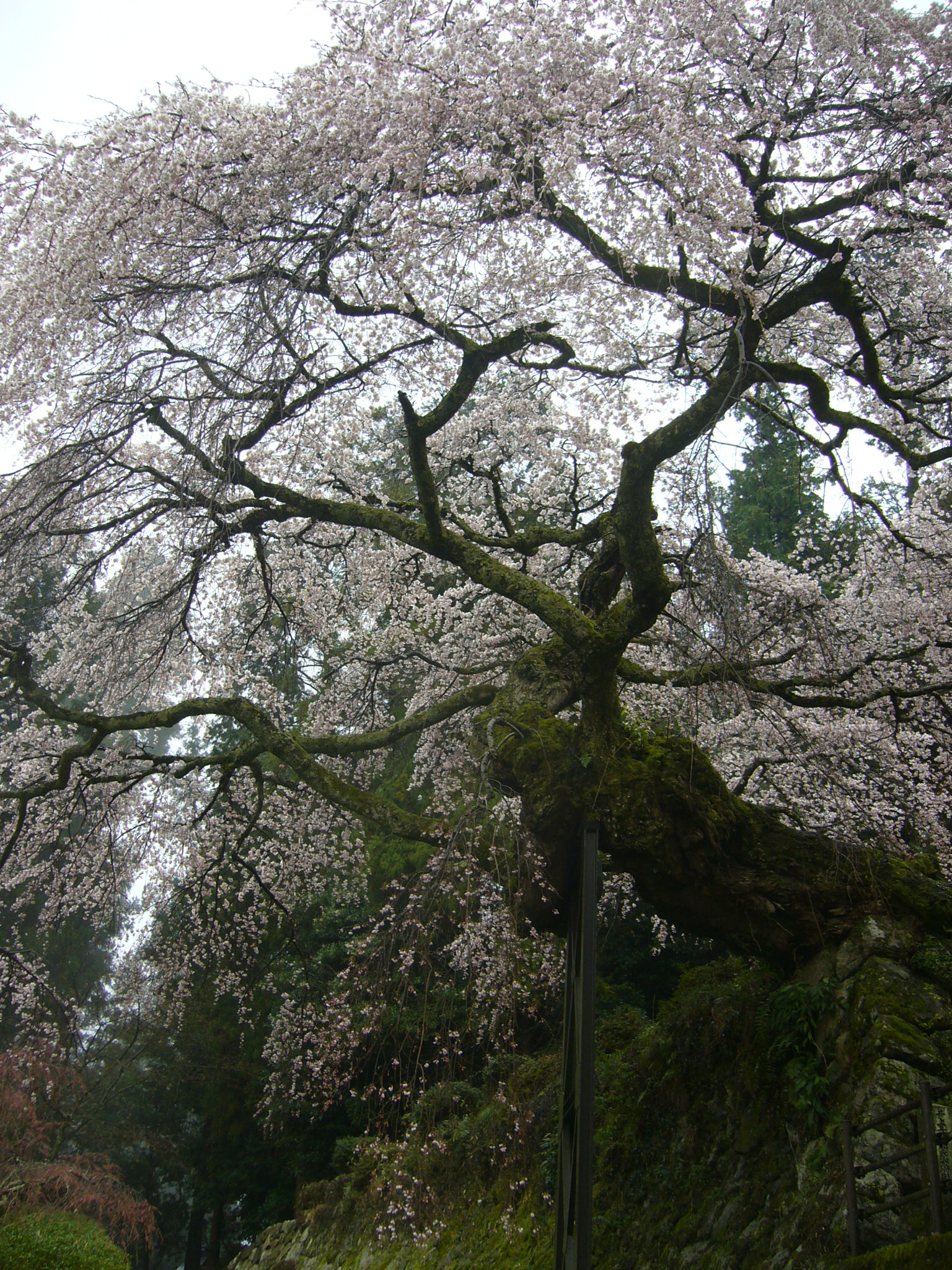 室生寺から西にある小高い中腹に立つ古寺「西光寺」の境内にあるのが「城之山桜」と呼ばれる枝垂れ桜で、大野寺の「小糸桜」の親木とも伝えられる樹齢約300年の一本桜であす。本来は桃色で小ぶりの花が密集したように愛らしく咲き、知る人ぞ知る桜の隠れたスポットらしい。丁度桜まつりで地元の人がおでんを売っていたのであるが、雨が降り、まだ5分咲きぐらいで少し残念でした。