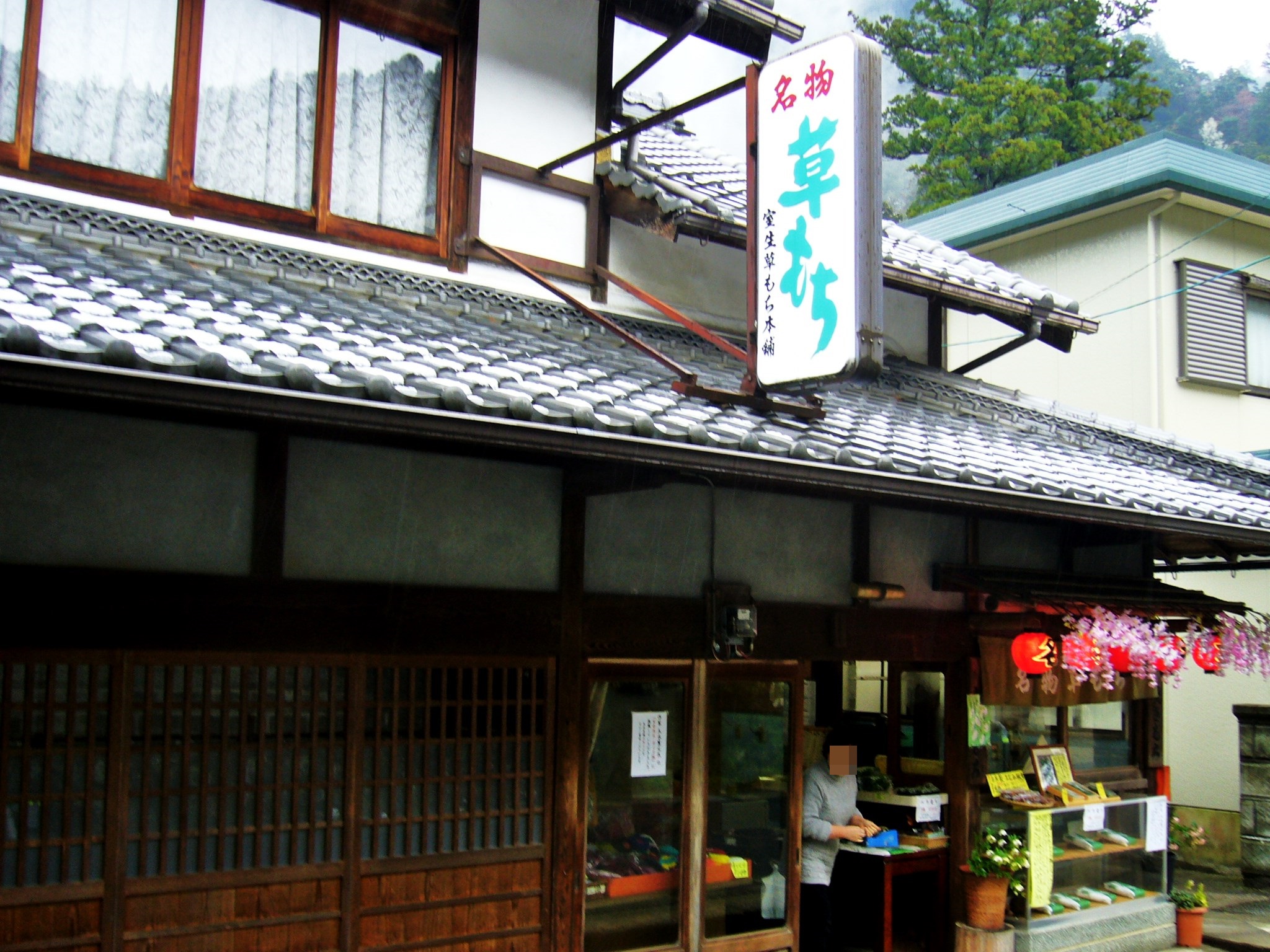 門前町を歩けば草餅のお店がいくつもあり、地元で採れるよもぎを使った山里らしい名物で口にいれるとすがすがしいよもぎの香りが広がります。五木寛之著「百寺巡礼」でも紹介された室生名物「草もち」を食べ歩きをします。