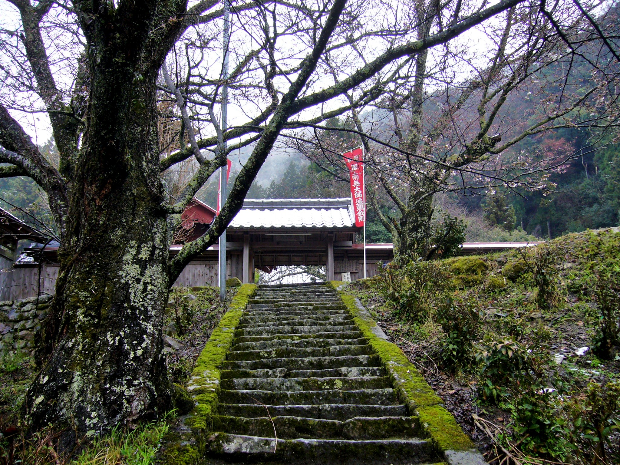 瀧蔵神社」は、長谷寺の奥の院と称し、古来より信仰深き神社として、長谷寺へ御詣りしても瀧蔵神社へ参詣しなければ御利益は半減すると伝えられています。初瀬川に上流、長谷寺から歩くなら山道を3kmほどの道のりです。標高430mの山上に鎮座する神社の参道の入口には休憩所があり、近所の方が桜の見物客にお茶を振舞ってくれます。以前はこの場所にお堂があったといいます。