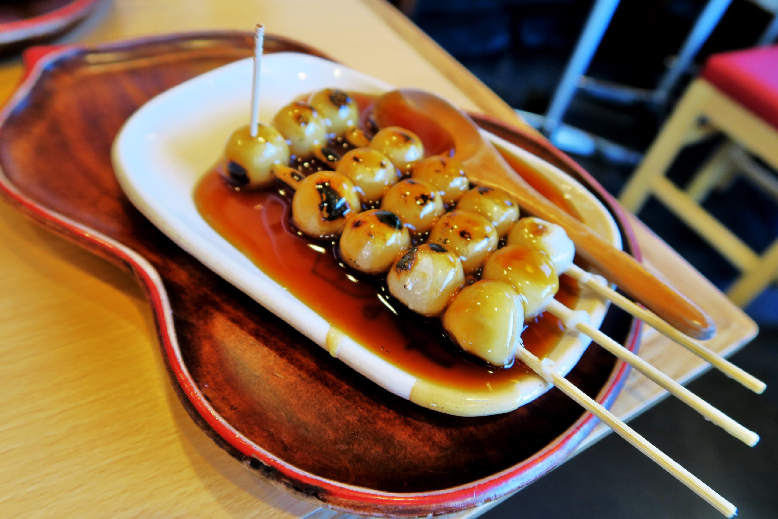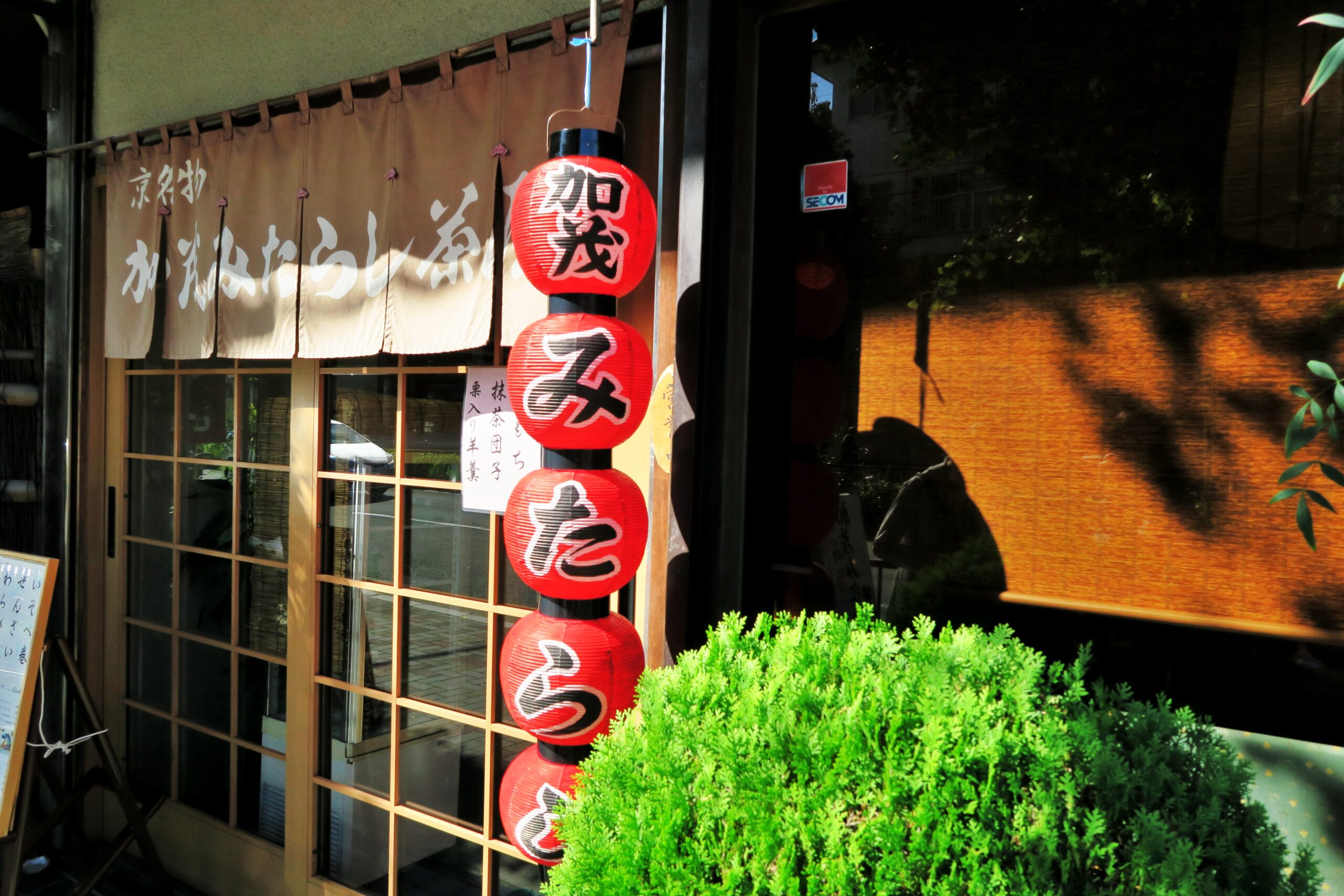 下鴨神社の門前名物といえば「みたらし団子」です。みたらし団子発祥の地、下鴨神社の北西(同社から徒歩3分くらい)にある甘味処「加茂みたらし茶屋」で頂ける。