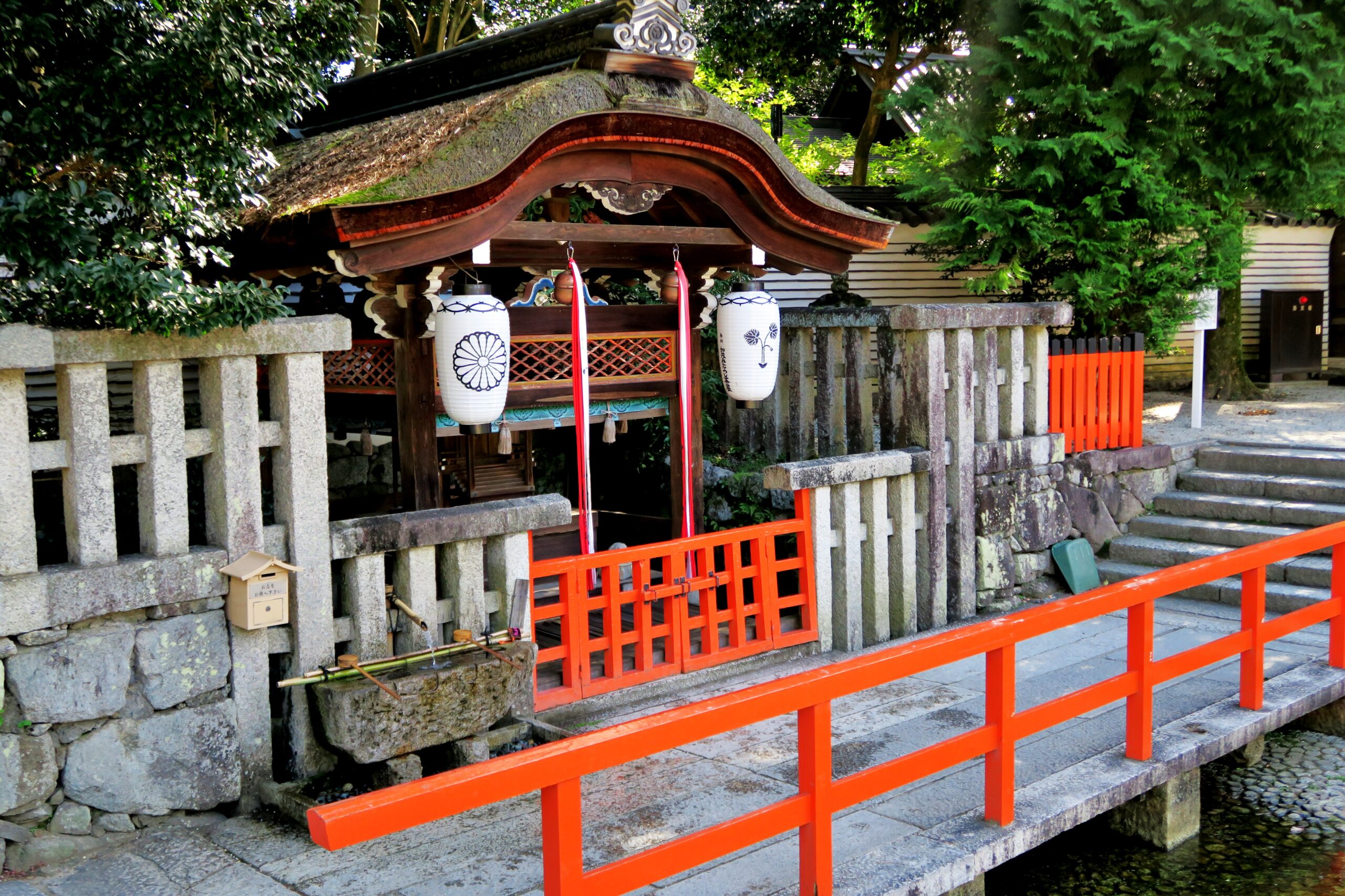 御手洗社は井戸の上に祀られることから井上社とも言われており、御手洗社から湧きだす清水で葵祭の斎王代の禊ぎや土用の丑の日に行われる足つけ神事(御手洗祭り)が行われている。「土用になると御手洗川から清水が湧き上がる」と言われいて、御手洗池から湧き出るアワを人の型にかたちどったとか、後醍醐天皇が水をすくった際に、池のアワの出方が初めに一つ浮かんで、続いて4つ出たところからこの形が生まれたともいわれているのが「みたらし団子」で、ここが発祥の地とされている。