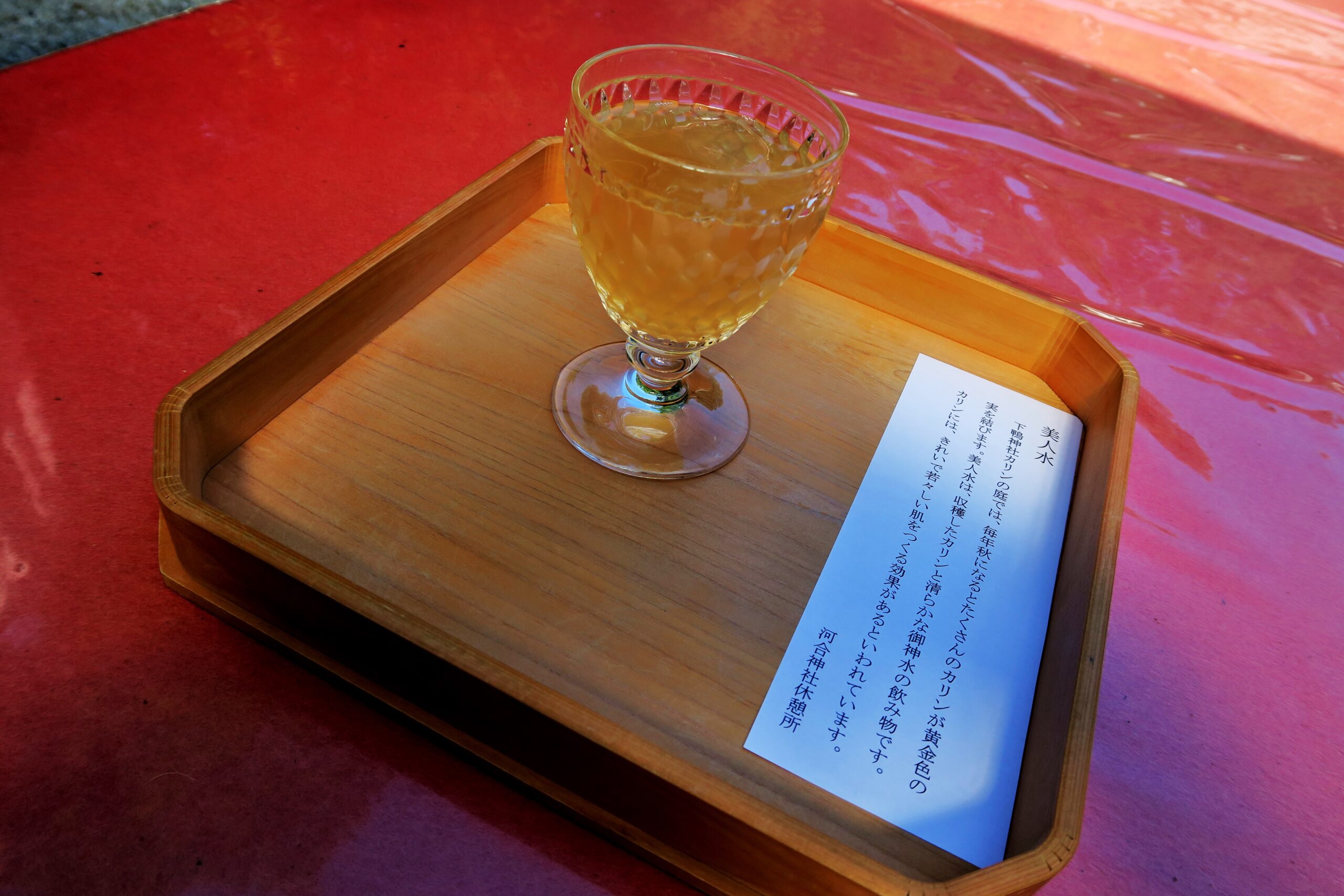 最後の仕上げは休憩所で一杯350円の「カリン美人水」をいただくのである。カリンには、抗酸化作用の強いビタミンC、タンニンをはじめとするポリフェノールが豊富に含まれていて、美肌・美白効果が期待できます。