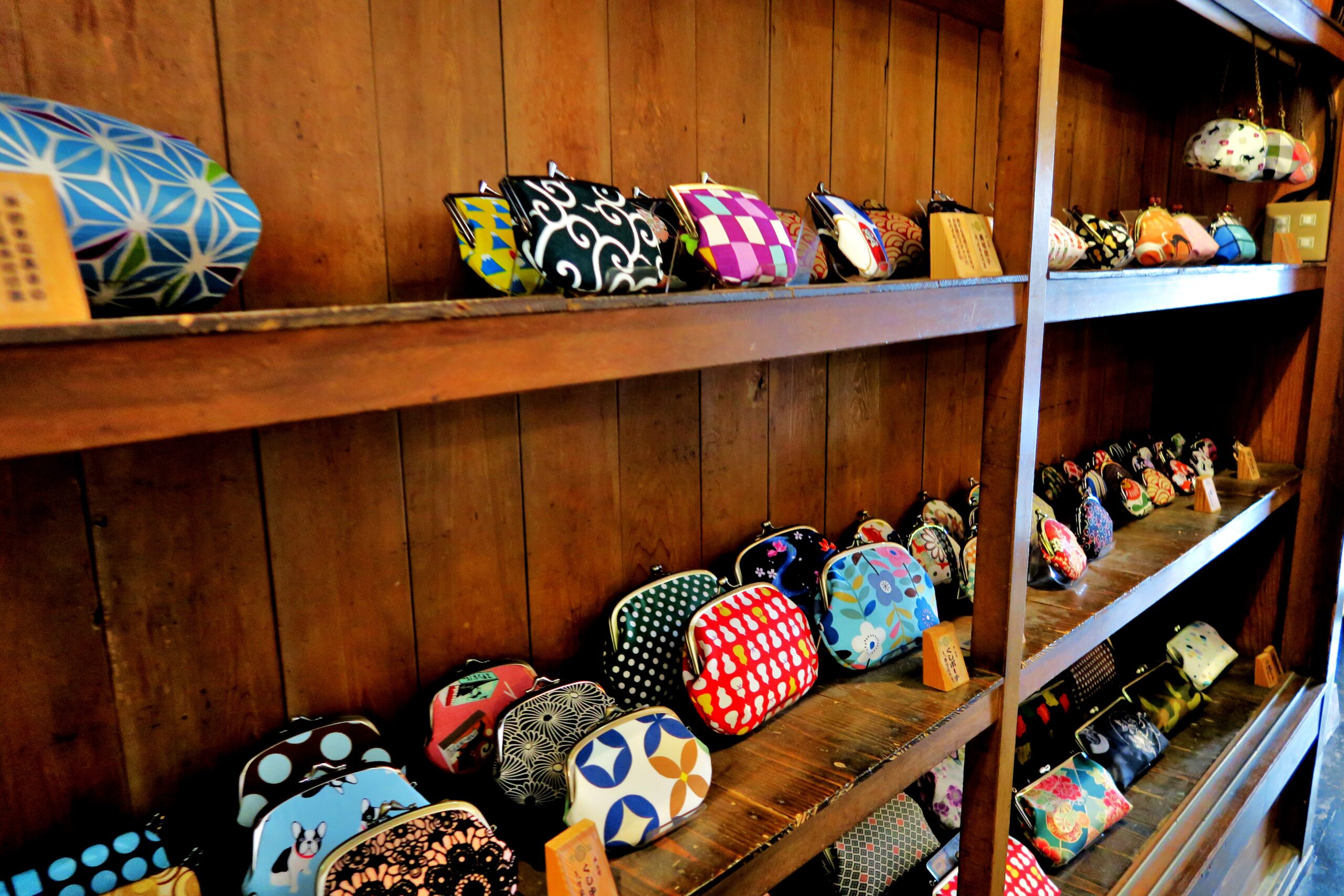 店内には大小さまざまながま口がところせましと並べられていて、柄も豊富です。