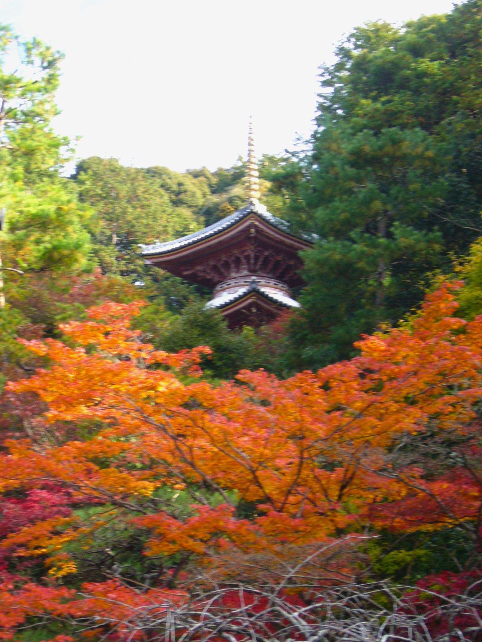 斉衡年間(854~857)左大臣藤原緒嗣が伽藍を造営したと言われ、カッコウが鳴く寺域は知る人ぞ知る紅葉の名所です。本堂東側の山上にそびえ立つ高さ16mの多宝塔の「医聖堂」は医療と宗教が共に手を携え、健康に暮らせるように祈願して立てられたとのこと。しかし驚くほど観光客がいないので、ゆっくりのんびり紅葉鑑賞ができる穴場です。