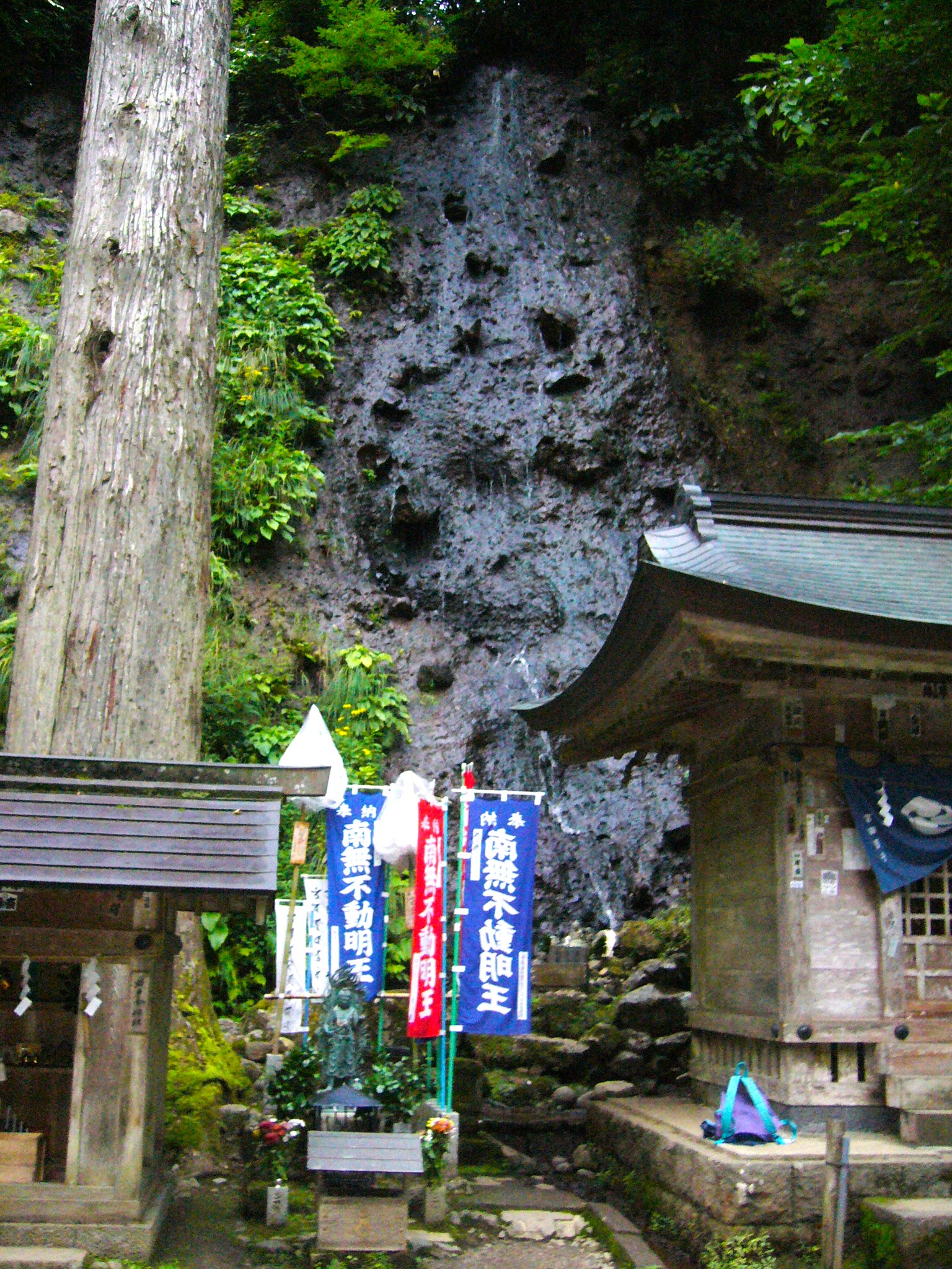 神橋を渡ってすぐの右手には、天宥が月山から水を引いて造った「須賀の滝」があり、明治以前は仏教らしく不動の滝と呼んでいたとのこと。清らかな滝の音が心地よく心に響く。