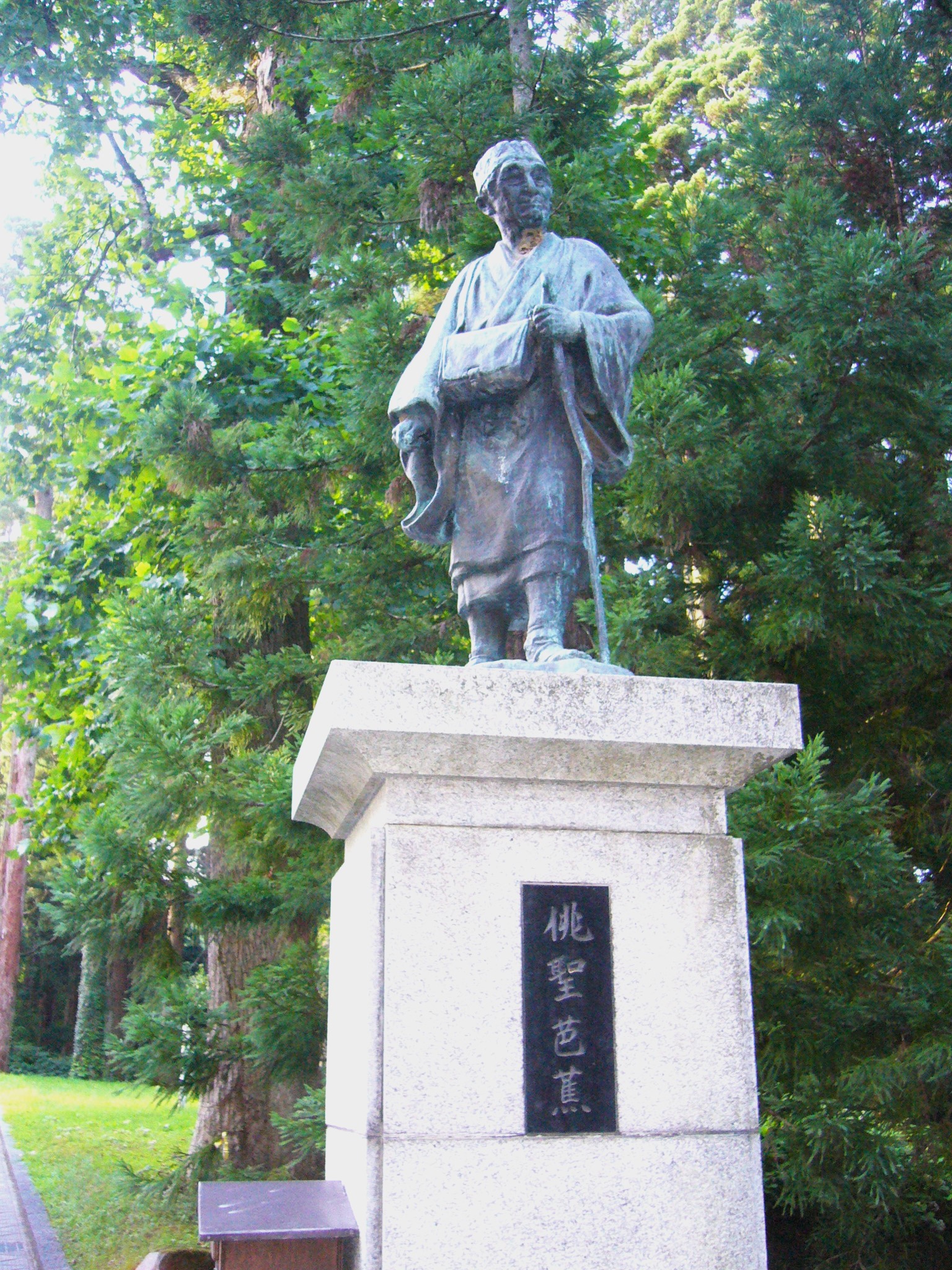 また滞在中に出羽三山と総称される3つの山を残雪を踏みしめ巡拝し、坊に帰った芭蕉は会覚阿闍梨に請われて、霊山から受けた感銘を短冊に記しました。「涼しさや ほの三日月の 羽黒山」「雪の峰 幾つ崩て 月の山」「語られぬ 湯殿にぬらす 袂かな」二の坂茶屋のすぐ先に芭蕉三日月碑があります。