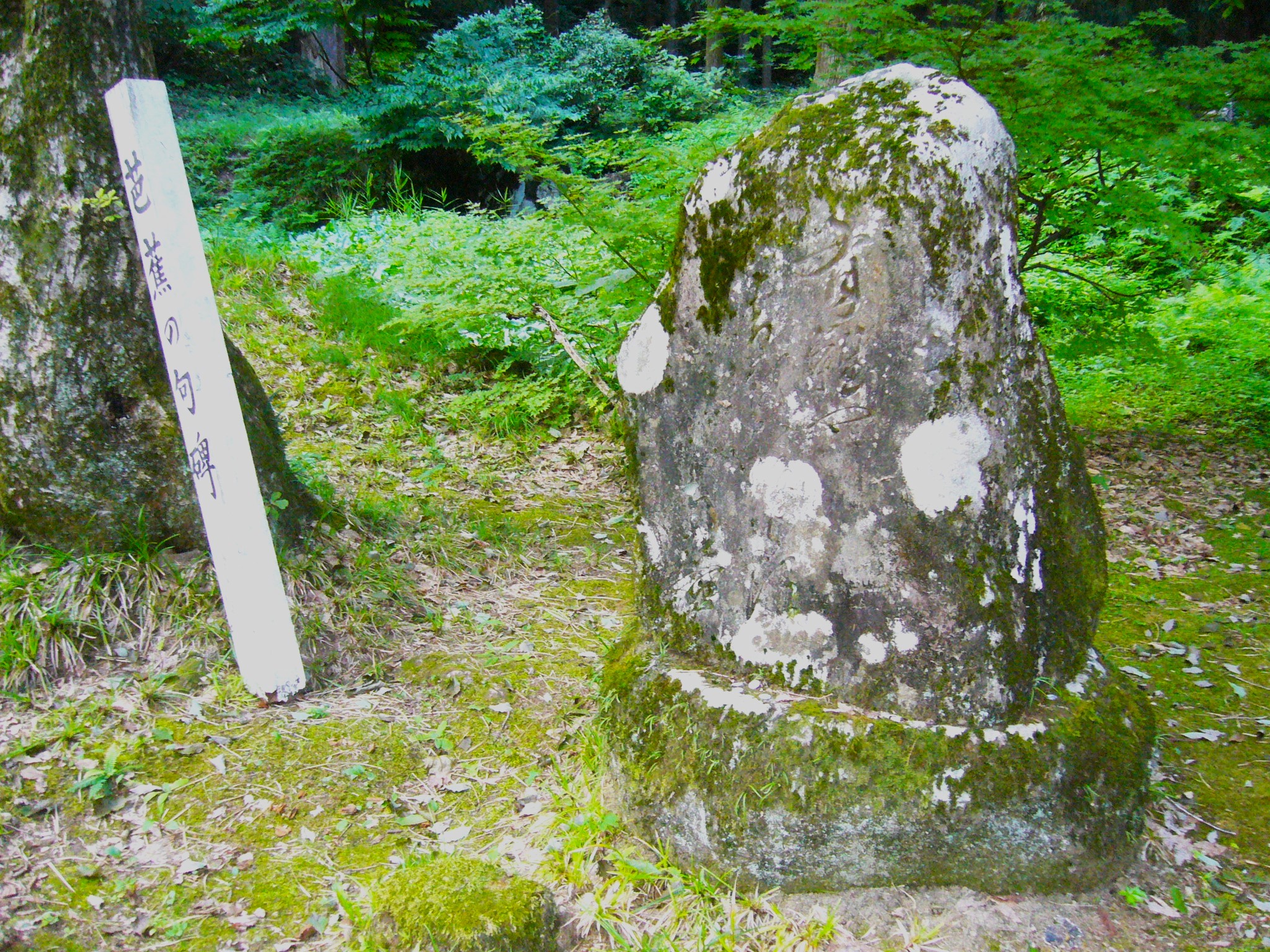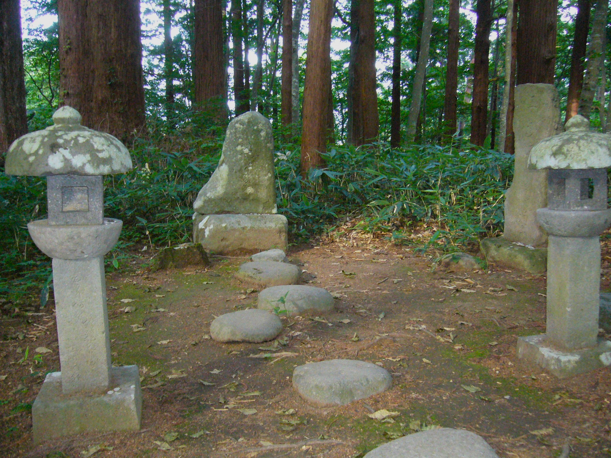 一息ついて最後の三の坂にとりかかる。三の坂の手前を右に折れて300mほど進んだ先に、南谷別院(玄陽院)跡があります。元禄2年(1689)6月松尾芭蕉が「おくのほそ道」の旅の途中に門人曽良と月山泊まり以外の6泊を南谷の別院で過ごしました。羽黒山の別当代会覚阿闍梨(和合院)から格別のもてなしを受けた芭蕉はここでのことを、「有難や 雪をかほらす 南谷」と詠んでいて、文政元年(1818)に立てられた芭蕉句碑が残っています。また心の字に見える「心字池」もあります。