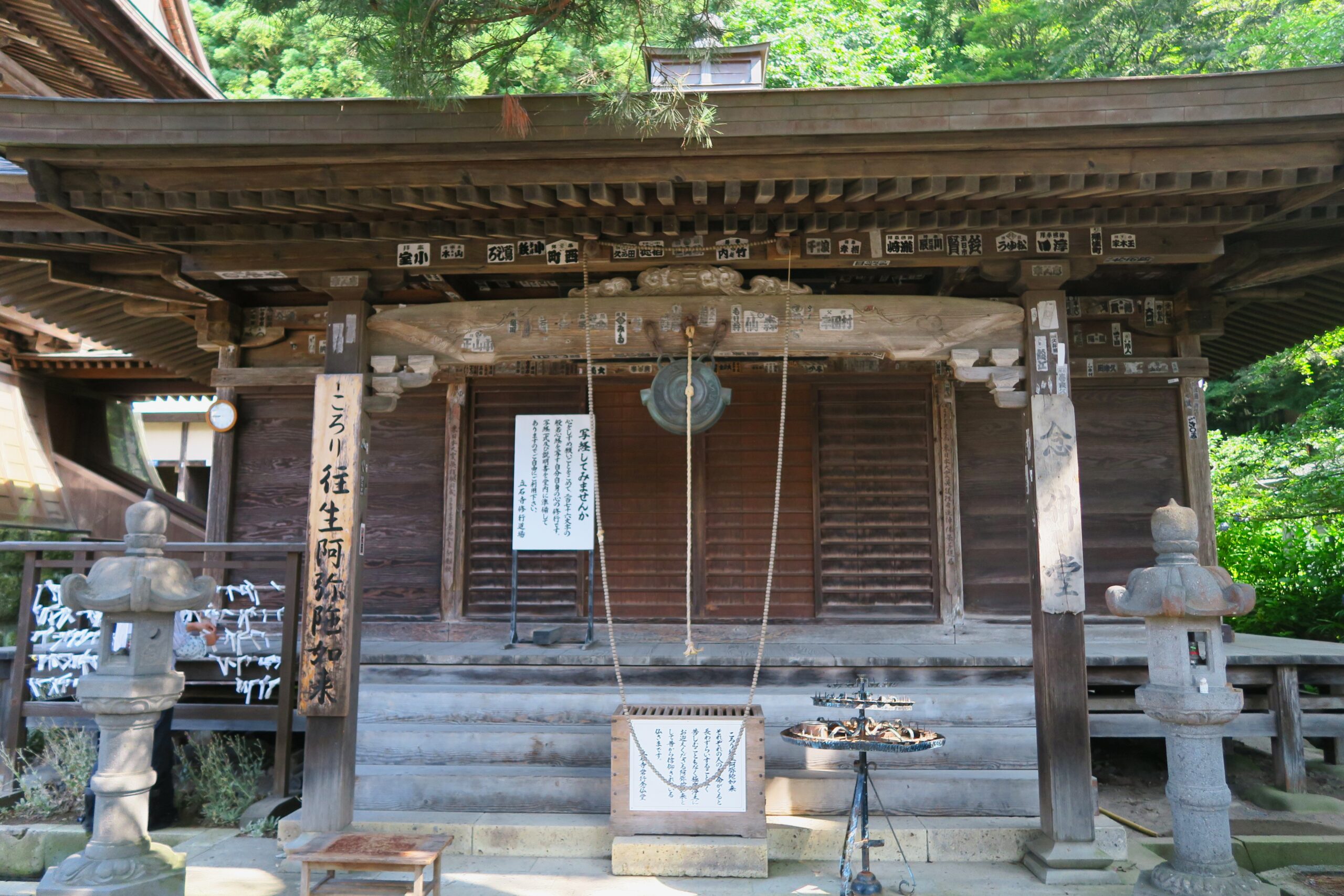 宝物殿の隣のお堂は常行念仏堂で、江戸時代の初めに再建されました。座禅や写経をおこなう立石寺の修行道場ですが、参詣者も自由に修行ができるように準備されています。