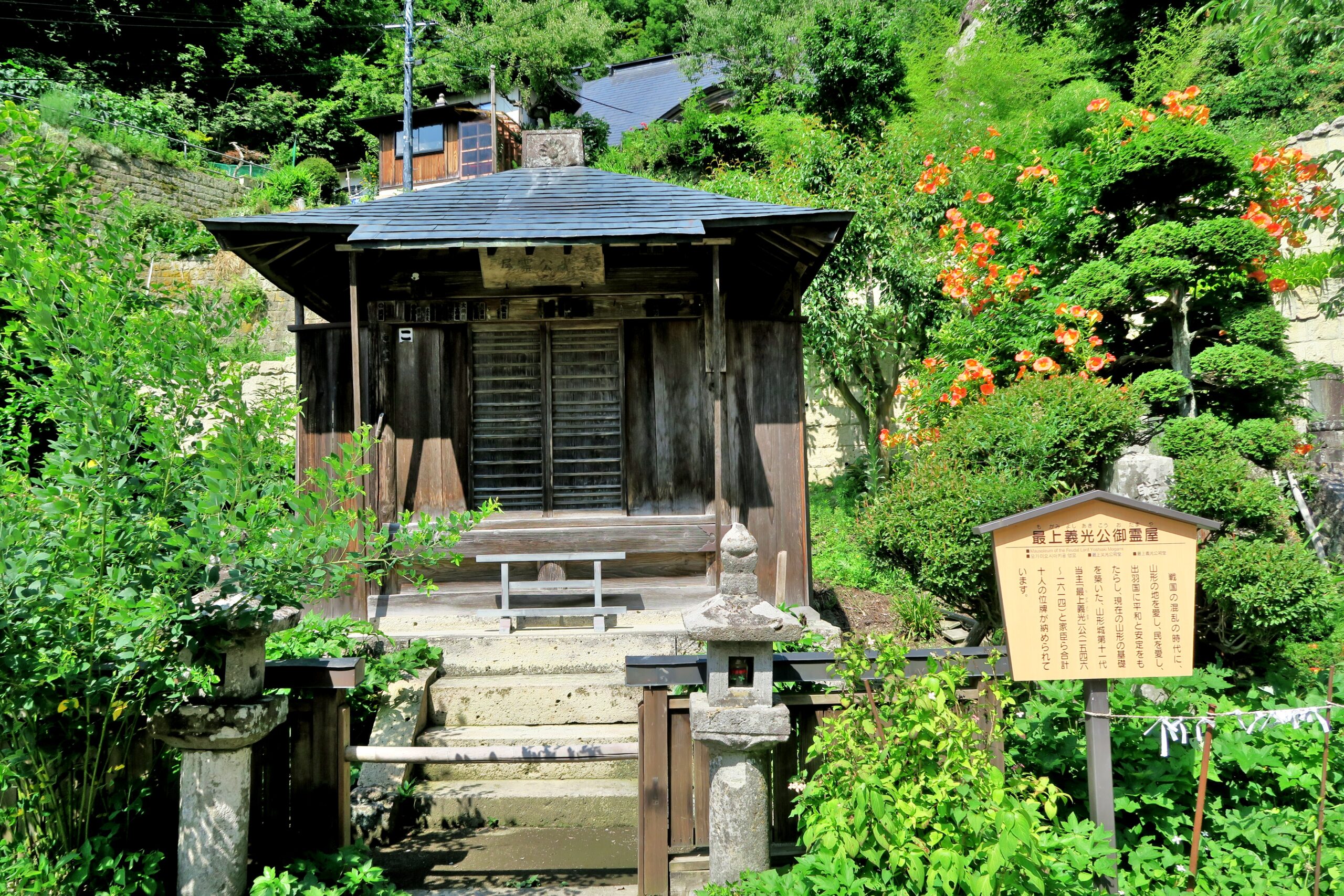 中性院の背後の岩窟には新庄藩戸沢家の歴代の石碑が立ちますが、向かいには現在の山形の基礎を築いた、山形城第11代当主「最上義光」公の御霊屋があります。