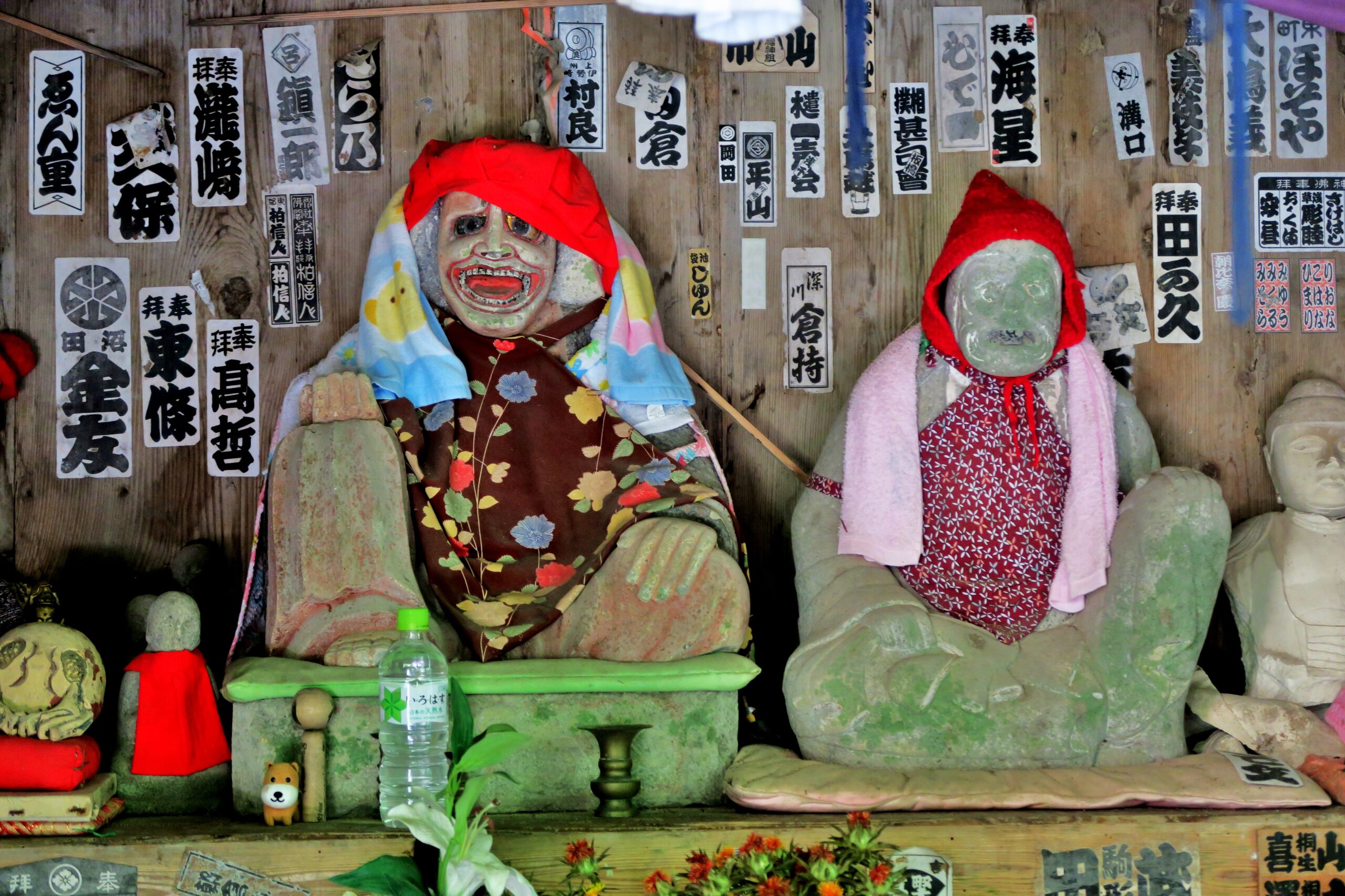 山門からやや上ったところにある間口2.7m、奥行き1,8mのお堂が「姥堂」です。堂内には十王経に書かれている三途の川で閻魔大王の助手を務める奪衣婆の石像が祀られています。ここから下は地獄、ここから上が極楽という浄土口で、かつて参拝者は、そばの石清水で心身お清め、新しい着物に着替えて極楽に登り、古い衣服は堂内の奪衣婆に奉納するのです。山寺は、中世以来、人々の死後に魂が帰る山、また死者を供養する山として信仰されてきました。