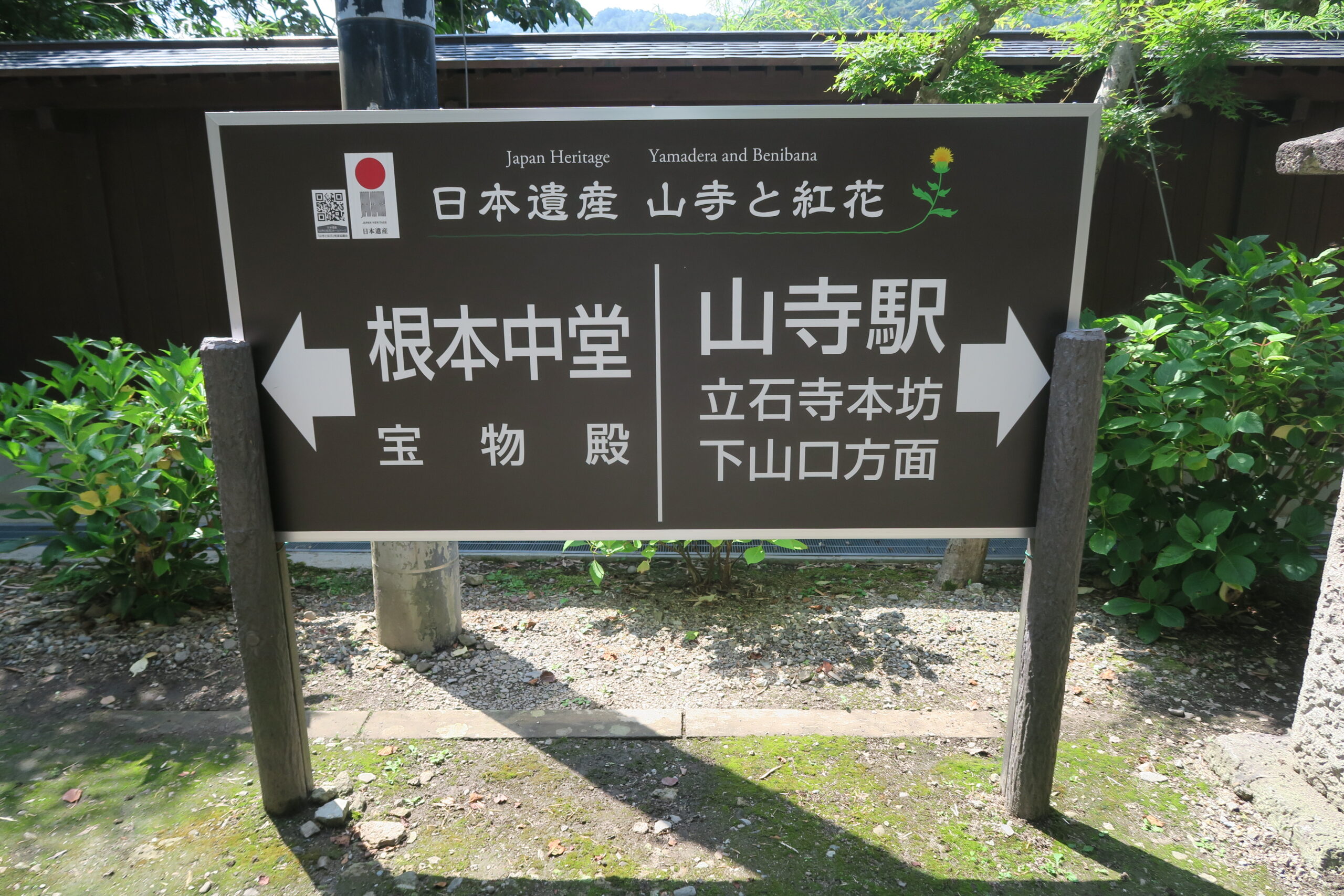 日本遺産「山寺が支えた紅花文化」とは、江戸時代に質・量ともに日本一の紅花産地となった山形県の中央部に位置する村山地域の発展には当地を代表する古刹「山寺」が深くかかわっていました。紅花は慈覚大師円仁や第二世安然大師によってこの地に伝えらえたといい、最上川がもたらす肥沃な土壌と朝霧の立ちやすい気候風土が良質な紅を多く含む紅花を育み、トゲのある紅花を摘み易くした栽培適地でした。松尾芭蕉が『おくのほそ道で尾花沢で訪れたのも紅花の買継問屋を営む旧知の豪商、鈴木清風でしたし、山寺参詣の道すがら紅花畑を目にし、「眉掃きを俤にして紅花の粉」「行末は誰が肌ふれむ紅の花」と句を詠んでいます。