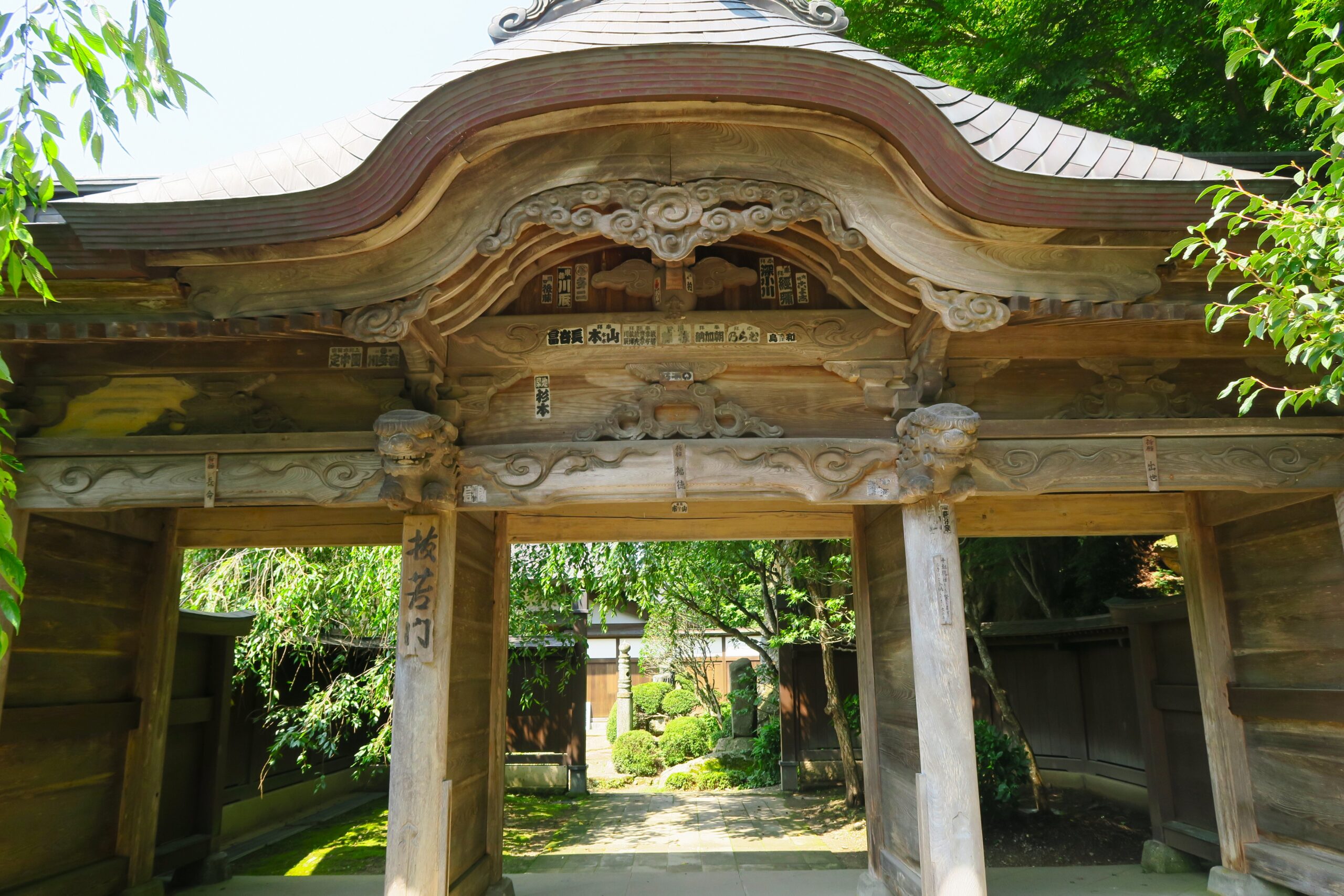 山寺の出口となる抜苦門ですが本坊からは表門となり、参拝者の全ての苦悩を抜けるとの理由から名付けられました。切妻、銅板葺、八脚単層門、三間三戸、正面唐破風、木鼻には獅子の彫刻などが施され格式が感じられます。