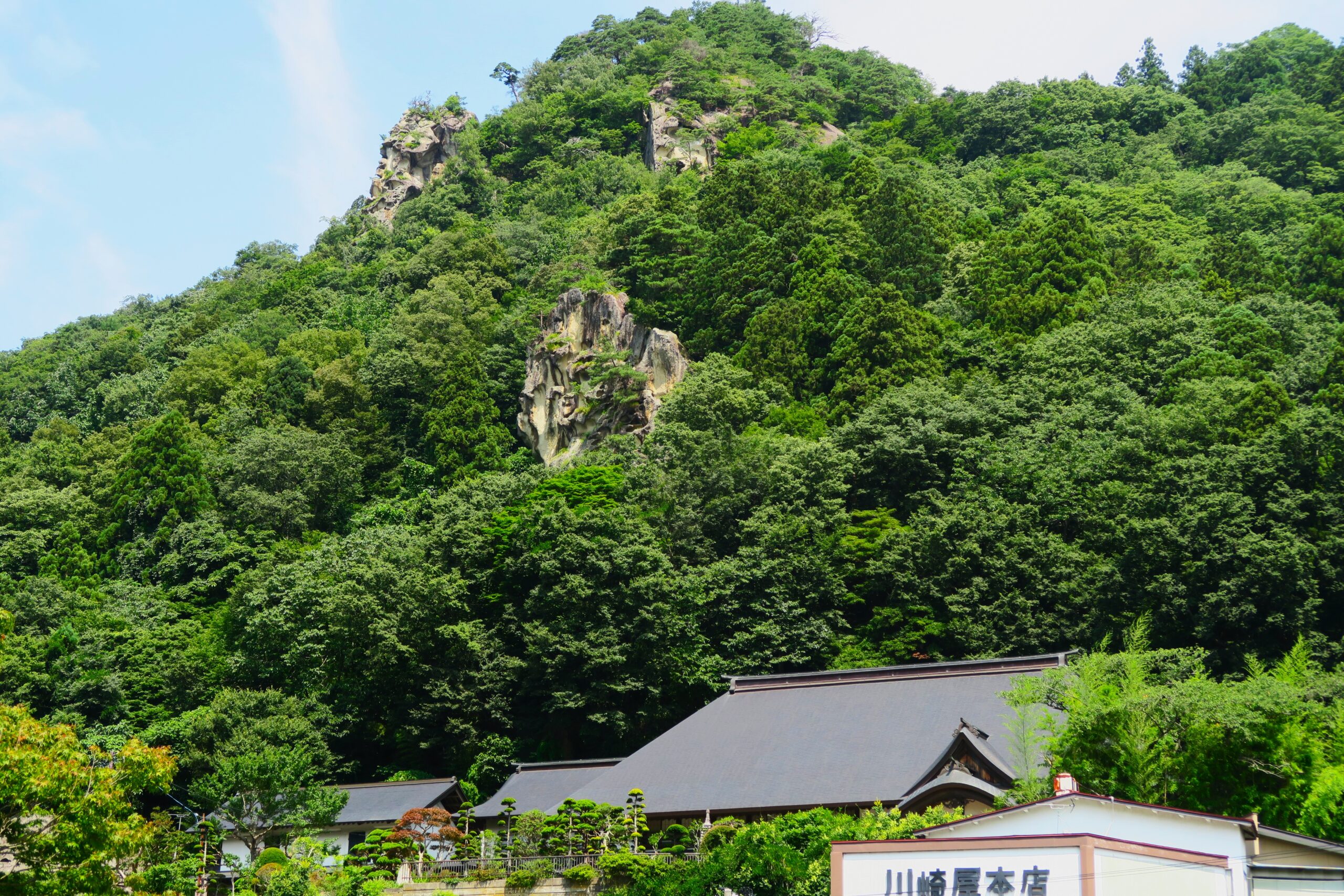山寺へはJR仙山線山寺駅から徒歩5~6分ほどで登山口にいくことができます。昭和8年(1933)開業、山寺駅からは展望台も設置されていて立石寺全体を見ることができます。写真は立石寺本坊背後の上部が天華岩(天狗岩)、下部が香の岩になります。