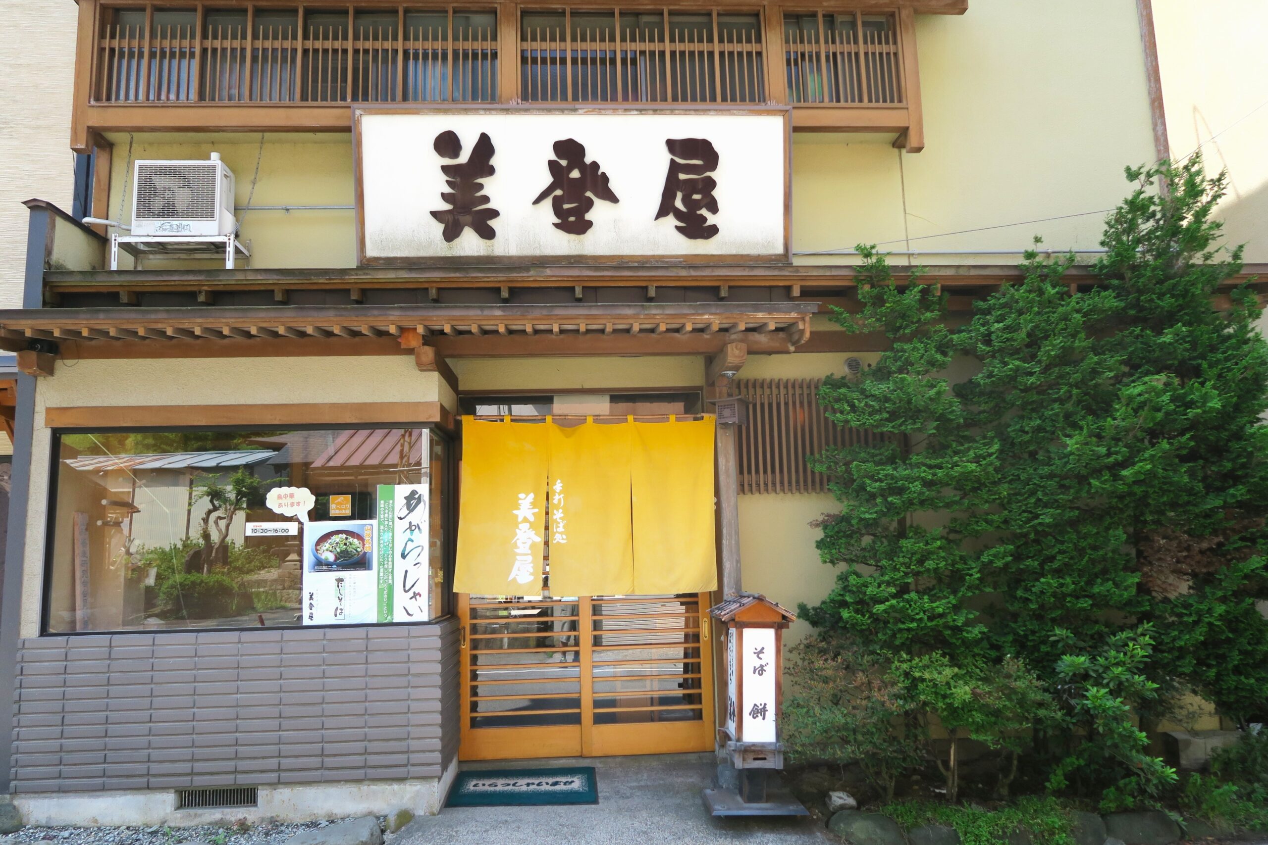 駐車場に戻りながら締め括りは10時半の開店を待って「美登屋」で名物の「だしそば」をいただくことに。3代目である店主の小笠原彰さんが新しい名物料理を作ろうと、20年ほど前に考案したのがだしそばです。