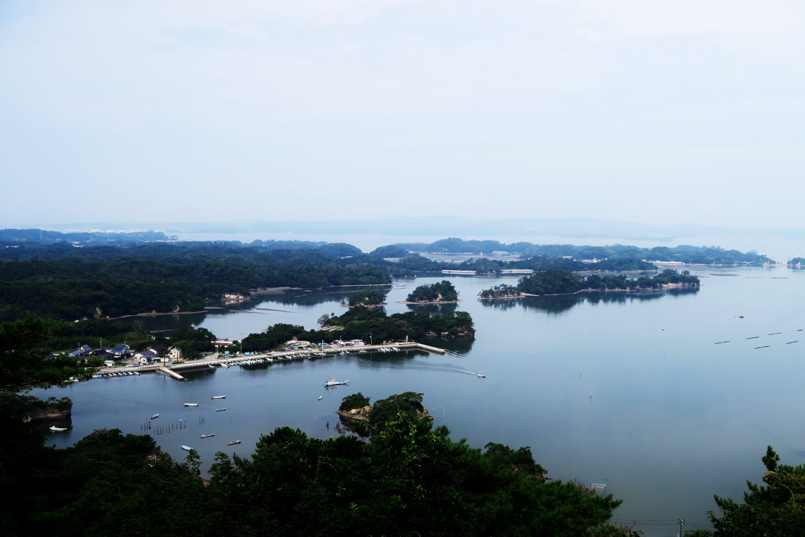 奥松島パークラインを走り朝一番で「松島四大観」のひとつ「大高森」に向かいます。松島は松島湾を中心に、東西10㎞、南北8kmの範囲を指します。松島の260余りの島々が浮かぶ松島湾の多島美を東西南北から一望する4つのビュースポット・松島四大観。異なる魅力をもつ4つの名所では、旅の記念のいふさわしい感動の光景を目にすることができます。四大観とは、江戸後期に仙台藩の儒学者・舟山万年によって選定された展望地で、それぞれの景色に合わせた呼称が付けられ「大高森(壮観)」「多聞山(偉観)」「富山(麗観)」「扇谷(幽観)」の4つをさします。