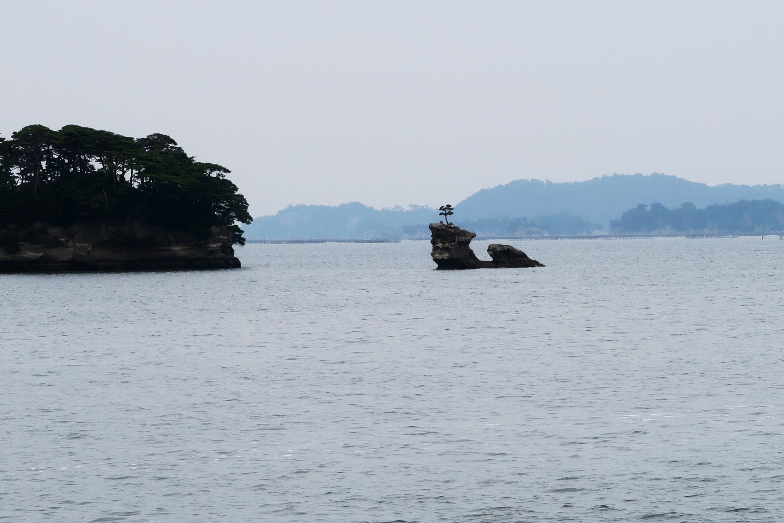 左手遠くに見えてくるのが「千貫島」です。島の名前は、伊達正宗が「あの島を余の館まで運んだ者には銭千貫を与える」と言ったことに由来します。島には松の木がぽつりと立つ、正宗がこよなく愛した島です。