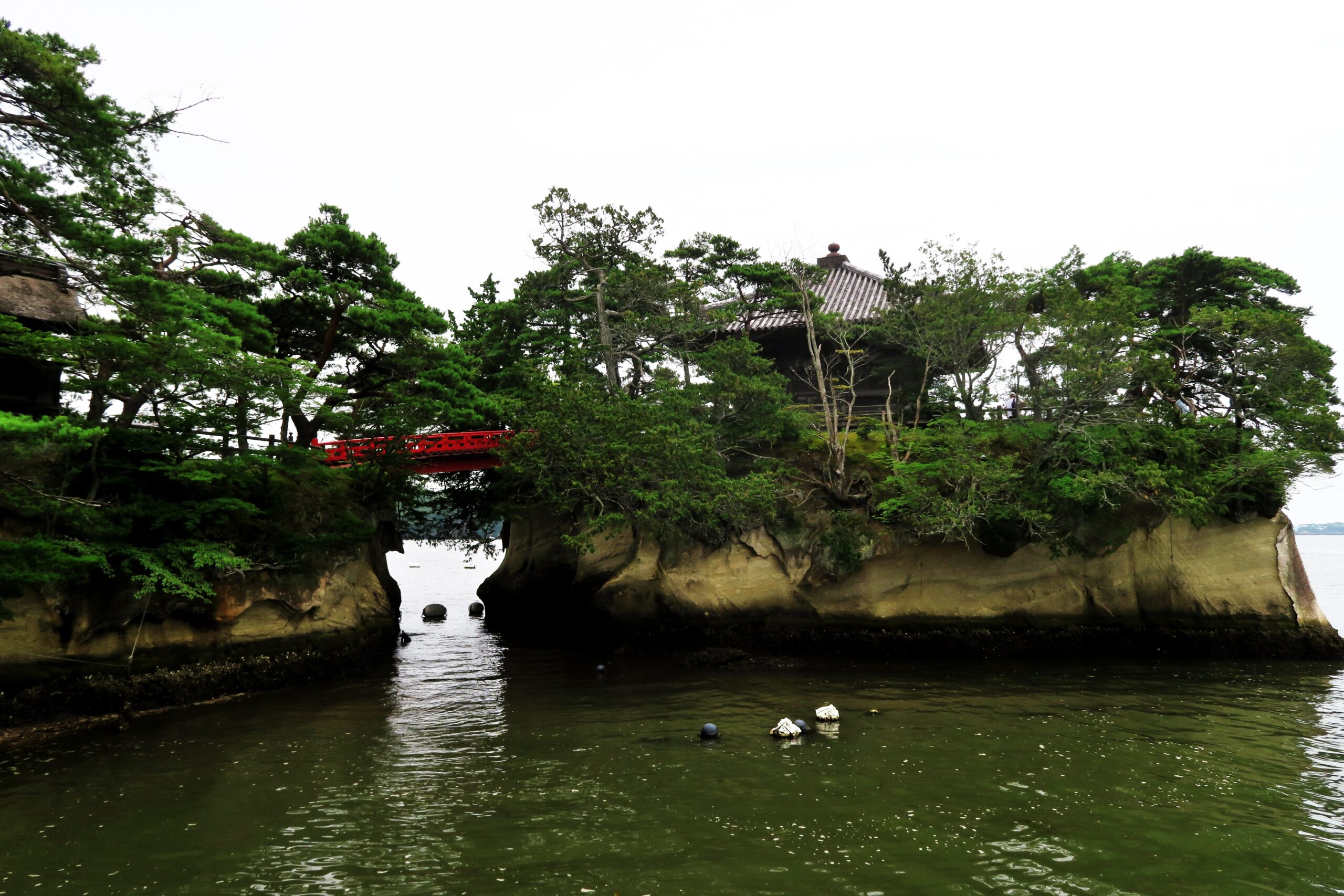 松島は、大小260余りの諸島からなるこの小さな町に寺院や歴史館、水族館、ごはん処にお土産屋さんなどがギュッと詰め込まれています。松島を回るなら、やっぱり歩きがいいということで観光船案内所前の駐車場に車を停めます。平安時代から景観の美しさで名が知られる「松島」。『おくのほそ道』でこの地を訪れた松尾芭蕉もまた筆を尽くしてその美観を「あるは二重にかさなり、三重に畳みて、左に分れ右に連なる・・・」と称えています。また芭蕉は感動のあまり心が高ぶって、冷静になれず、一句も詠めず夜も眠れなかったといい、「松島や鶴に身を借れほととぎす」(曾良)予は口を閉じて眠らんとしていねられず。と記していて、日本三景の景色がいかに素晴らしいかを物語るエピソードです。そんな松島を日本三景のひとつにあげたのは、江戸時代の幕府の儒学者、林春斎が天橋立、宮島、松島を「三処奇観」と評したのに始まります。