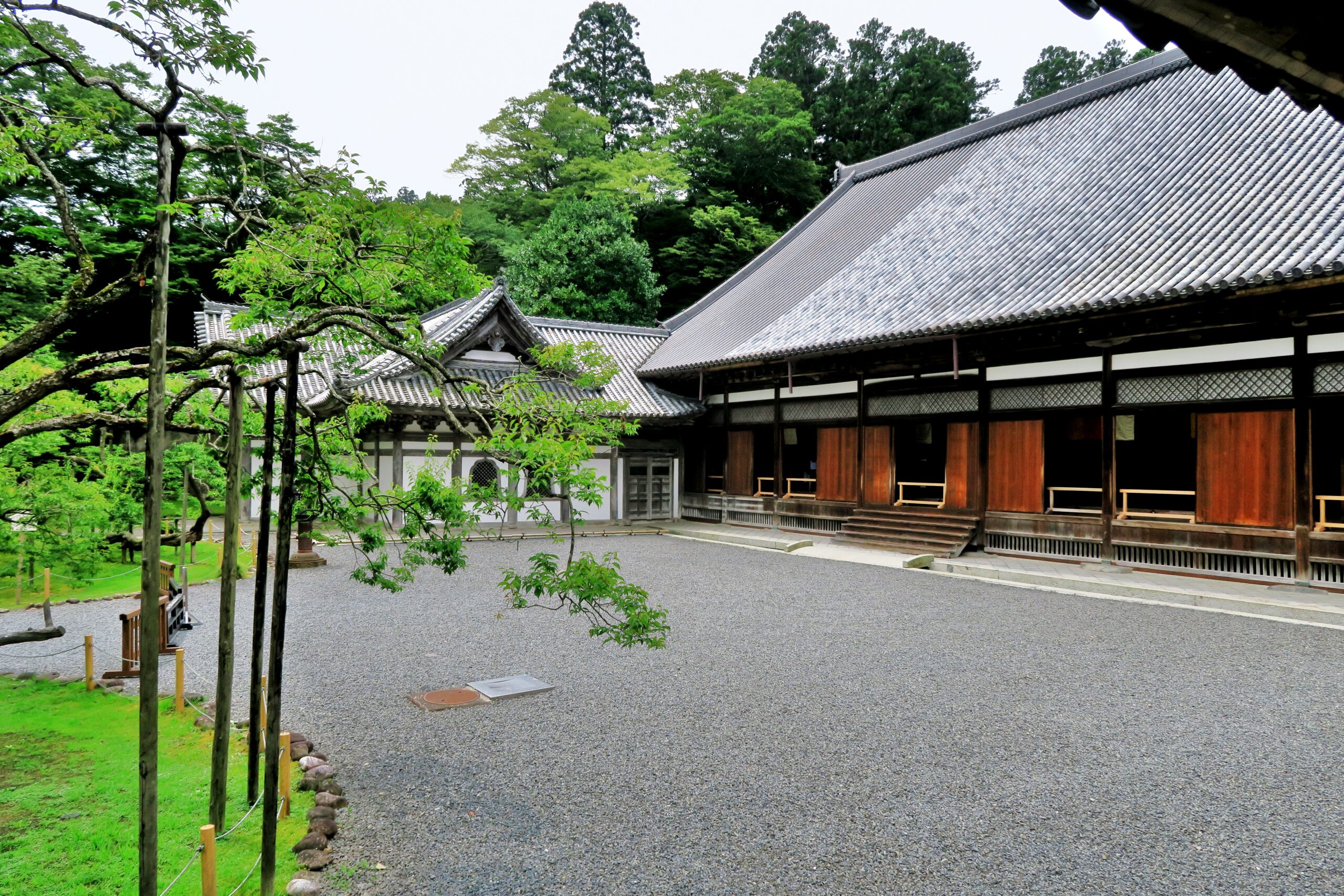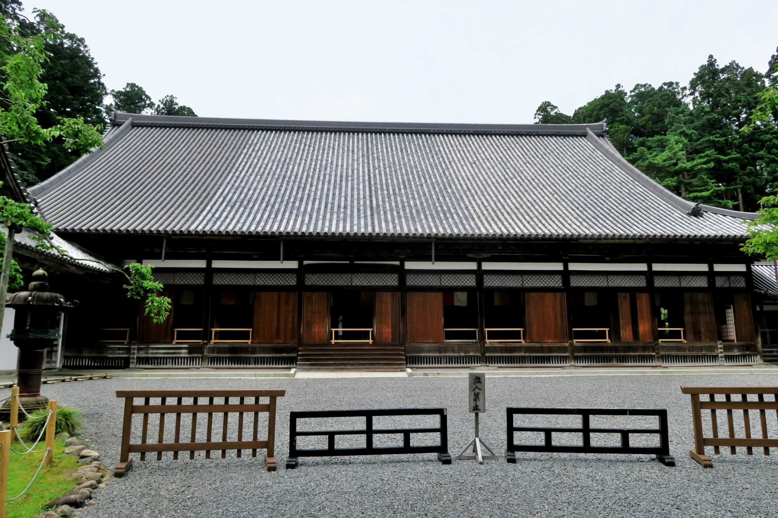 大屋根が美しい瑞巌寺本堂は南東に面し、南西端に御成玄関が、南東端に庫裡が続く回廊が接続します。大きさ正面38m、奥行24m、入母屋造りの本瓦葺きで、桧・杉・欅は熊野から運ばれ、京都・根来の大工衆が技を競いました。瑞巌寺の特色は、本堂内部の装飾にあり、孔雀の間・文王の間・鷹の間など10ある部屋の襖にはそれぞれの用途に合わせた絵が描かれています。例えば法要が営まれる『室中孔雀の間』では3面に異なる季節を描き、現実には起り得ない「四季が一度に来る」という現象を表すことで、そこに極楽世界を表現しています。(写真撮影禁止)