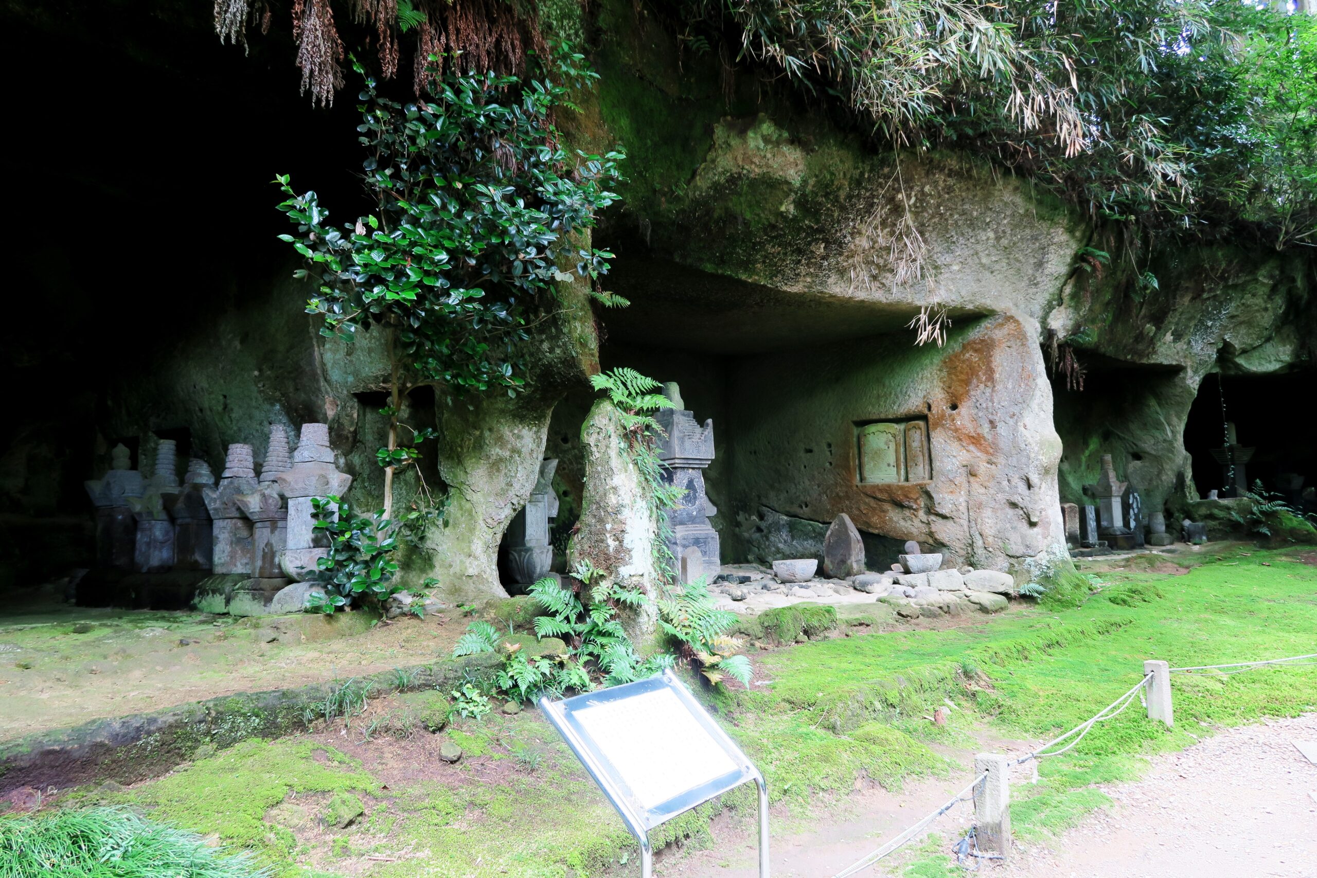約700年前の洞窟群の前を通り本堂「大悲亭」へ。
