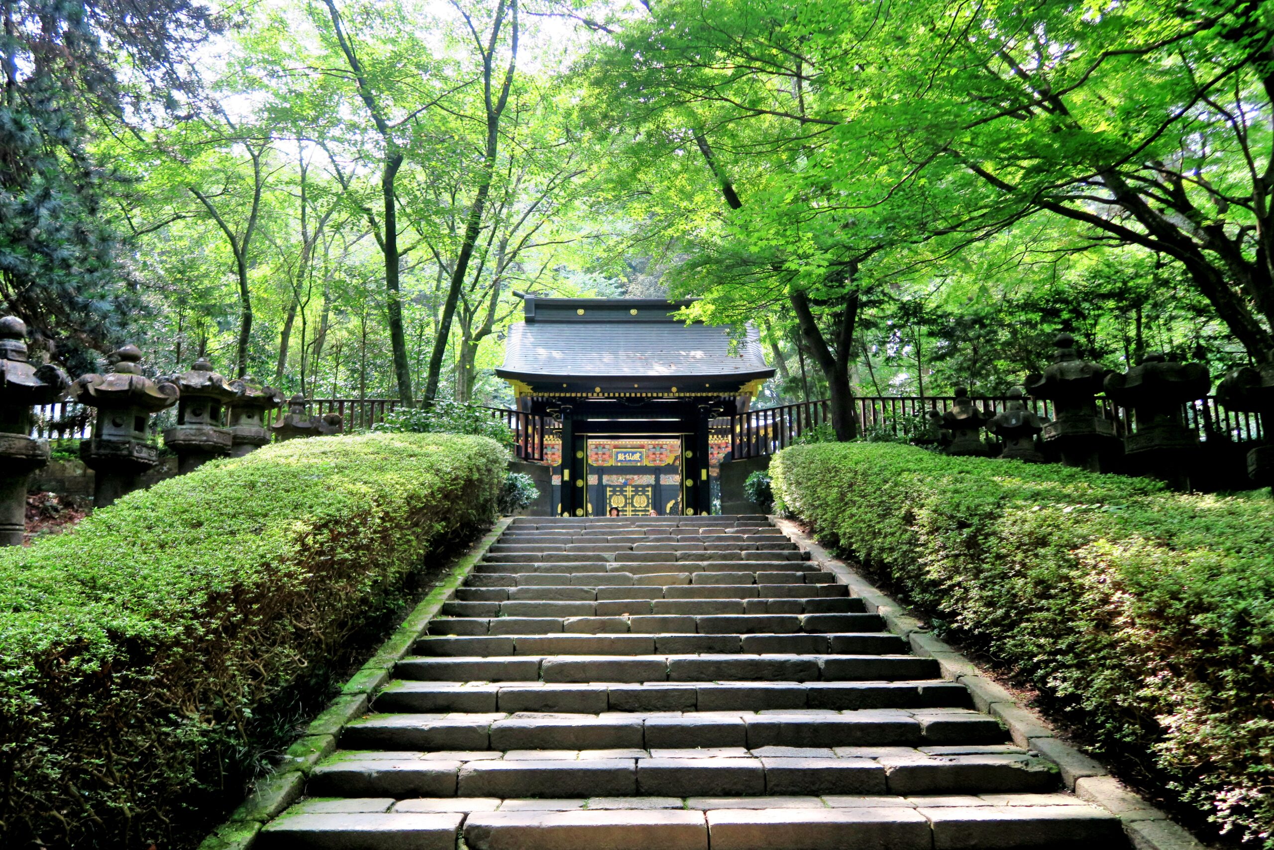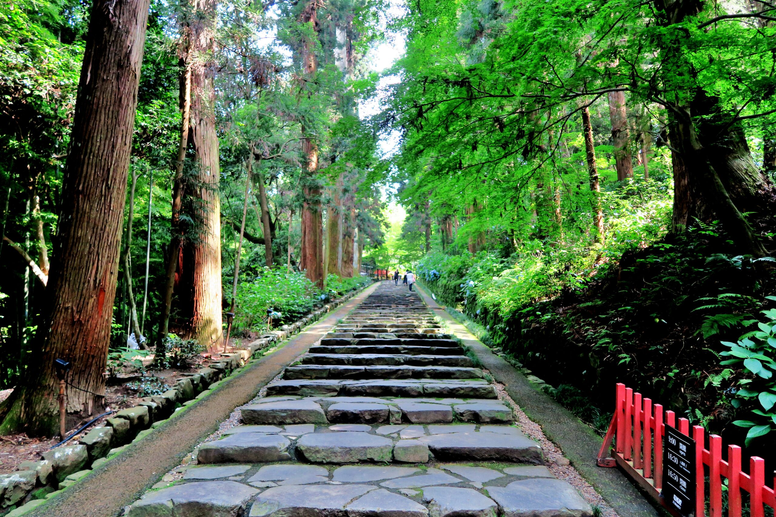参道の石造りの階段は藩政時代からのものでその数は伊達家の禄高(62万石)を表したものといわれます。左右にそびえる杉木立は古いもので樹齢380余年のにもなります。