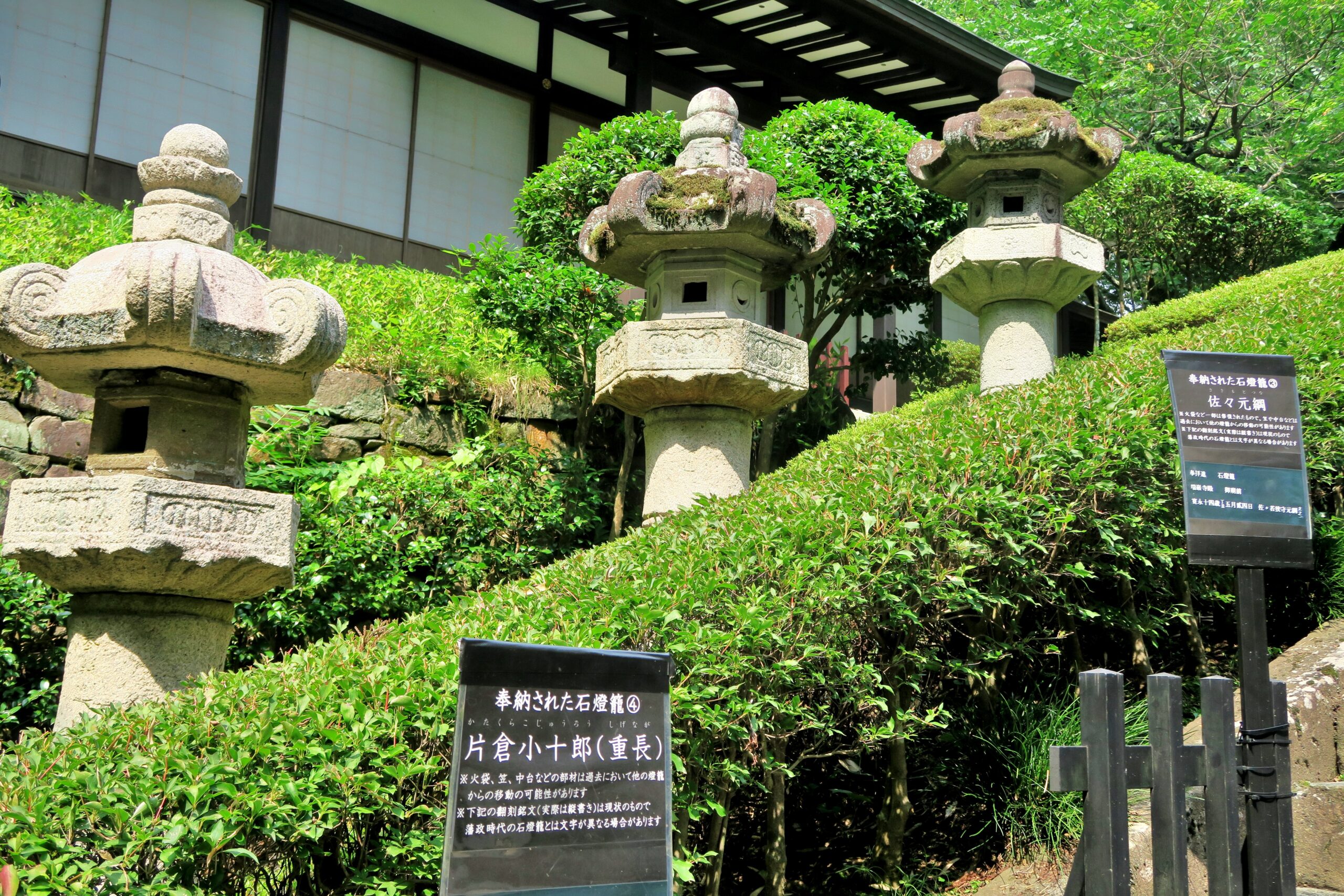 涅槃門自体はくぐることができないので、門の右側から先に進む道があり、階段を上っていきます。階段沿いには家臣から奉納された石燈籠が整然と並んでいます。片倉小十郎重長の石燈籠です。