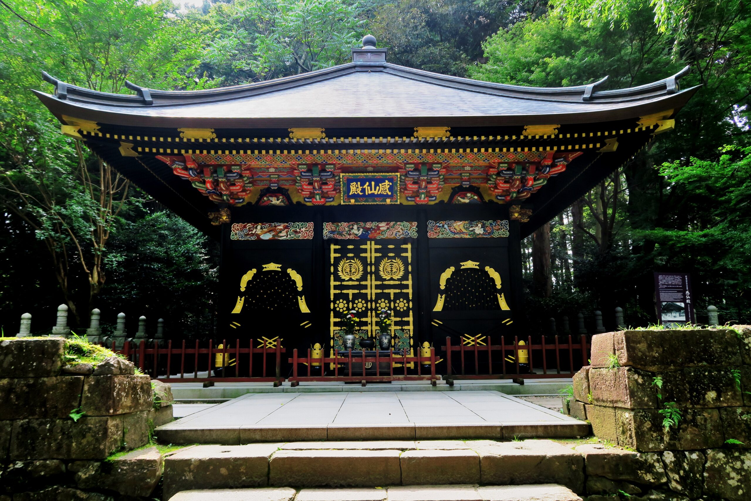桃山文化の遺風を伝える江戸時代初期の豪華絢爛な廟建築の名作であり、随所に施された鳳凰や天人など見事な彫刻と美しい色彩は豪華でみごたえ十分です。政宗はホトトギスの初音を聞くためにこちらに登り、同行した家臣に死後は当地に墓所を造るように命じたたといいます。普段は閉ざされていますが、政宗の命日(5月24日)等に御開帳されます。