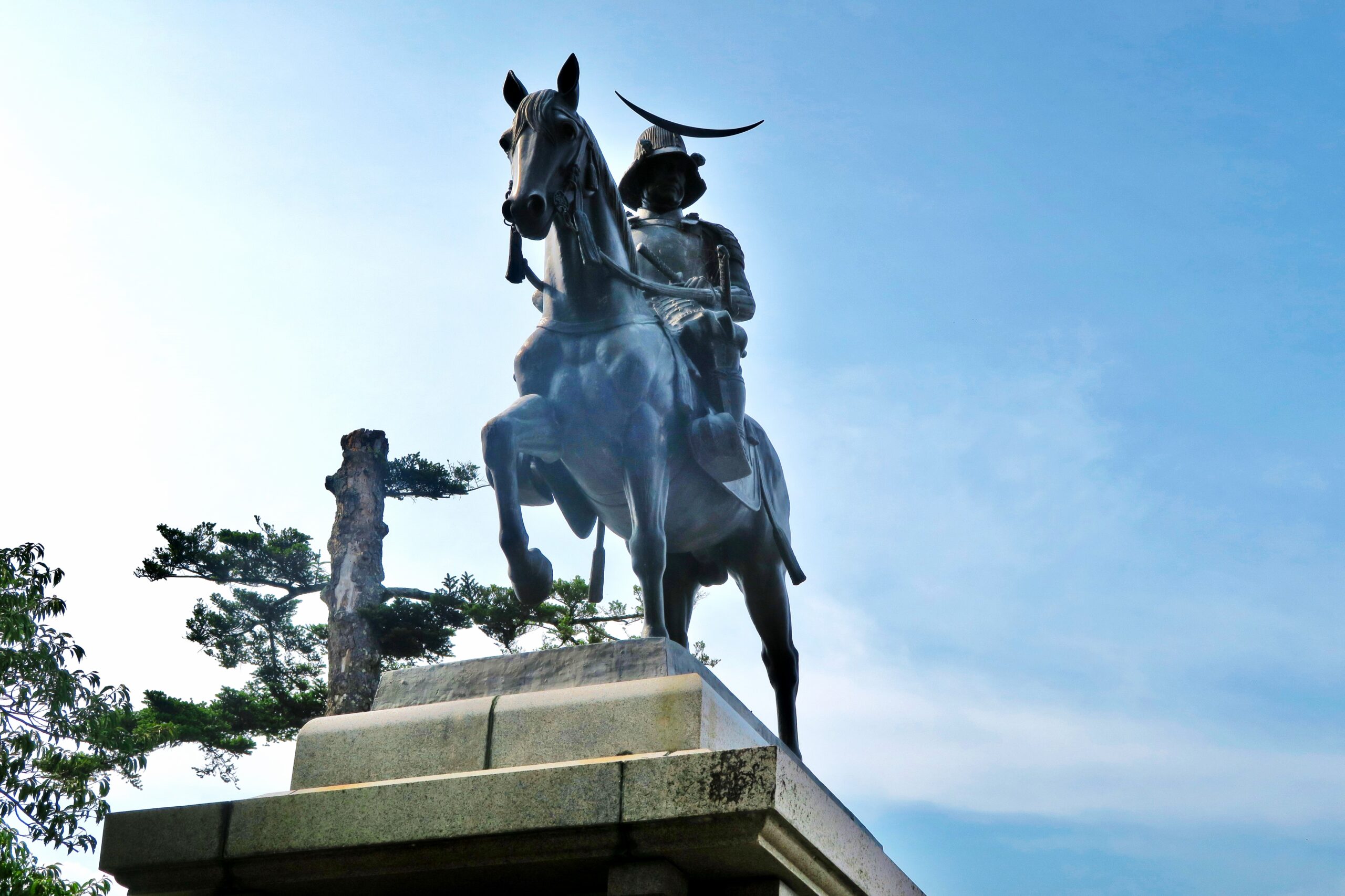 本丸跡の仙台城跡から城下を睥睨する伊達政宗騎馬像は定番の撮影スポットです。
