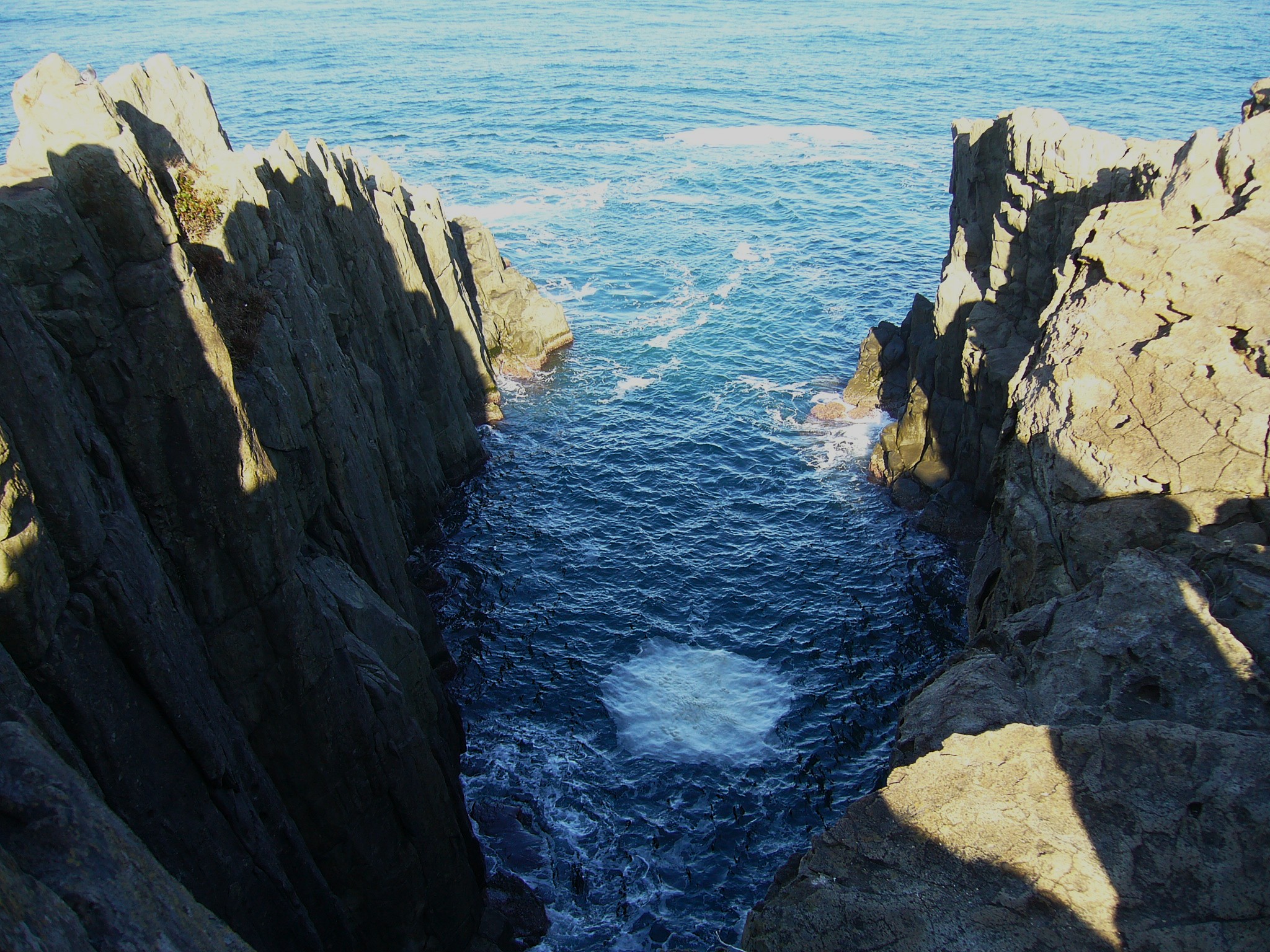 島の北側から西側にかけては、火山活動でできた安山岩が、板のように薄く割れてできた「板状節理」と呼ばれる雄島を特徴づける地形が広がっています。蜂の巣のような流紋岩は、遥か昔溶岩が南東から北西に向かって流れたことが原因だといわれています。