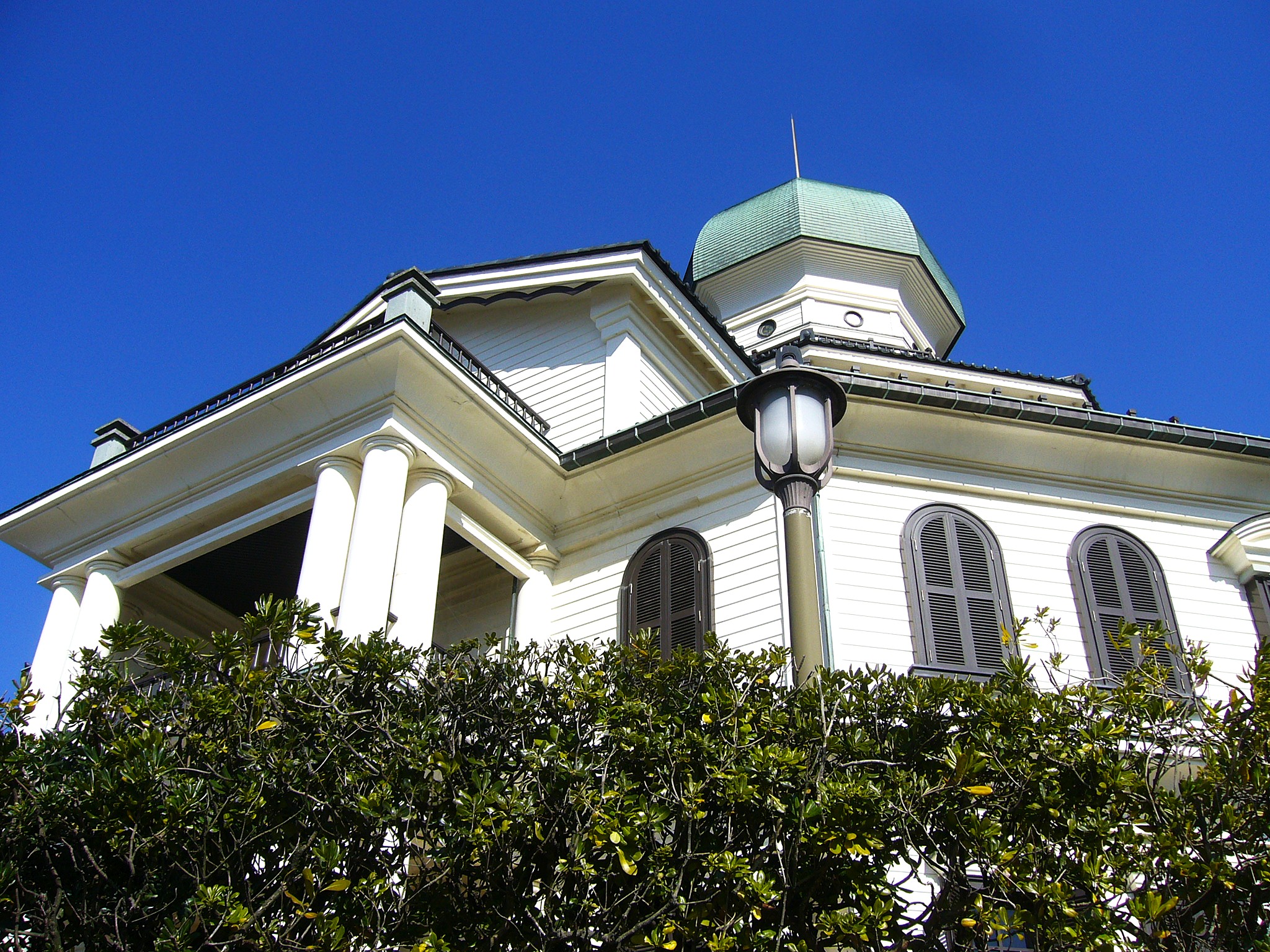 港を見下ろす高台にレトロなドーム型の屋根が印象的な五層八角の白亜の館がある。異彩を放つその外観は、三国湊が最も栄えた明治12年(1879)に、だまし絵の画家エッシャーの父であるオランダ人技師A.G.エッシャーが設計し建てられた、木造五階建て八角形というユニークな形状の小学校「龍翔小学校」の外観を忠実に模して復元したもの。教育に熱意を注いだ豪商らの寄付で建てられた町のシンボルは、独特の形態から「こうもり傘小学校」と呼ばれて地元の人々に愛されました。しかし木造のため耐久性がなく、二度の暴風雨もあり、築35年で解体されてしまいます。昭和56年(1981)三国市の博物館「みくに龍翔館」へと生まれ変わり、2023年「坂井市龍翔博物館」としてリニューアルされました。