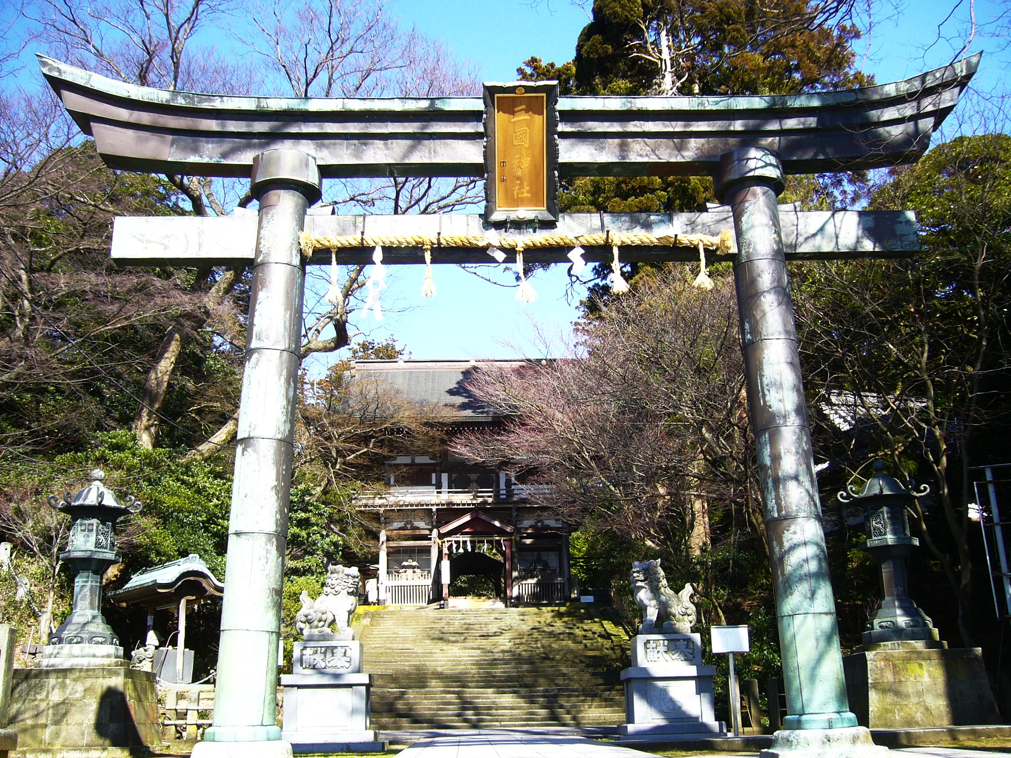 最後に「三國神社」に詣でます。長い石段から荘厳な随身門をくぐり抜け、木々が生い茂る広い境内へと足を踏み入れ、木漏れ日が揺れる静かな参道をしばらく歩くと、ようやく拝殿が現れます。[山王さん」と地元の人々から愛される三國神社です。九頭竜川河口に開け、北前船の寄港地として繁栄を極めた港町、福井県坂井市三国。その北前船で財を成した豪商・内田惣右衛門んさど船主らの尽力によって三国神社の拝殿も随身門も維持・改築ができました。三国祭が今のように盛大になったのも、北前船で町が栄えたからこそです。