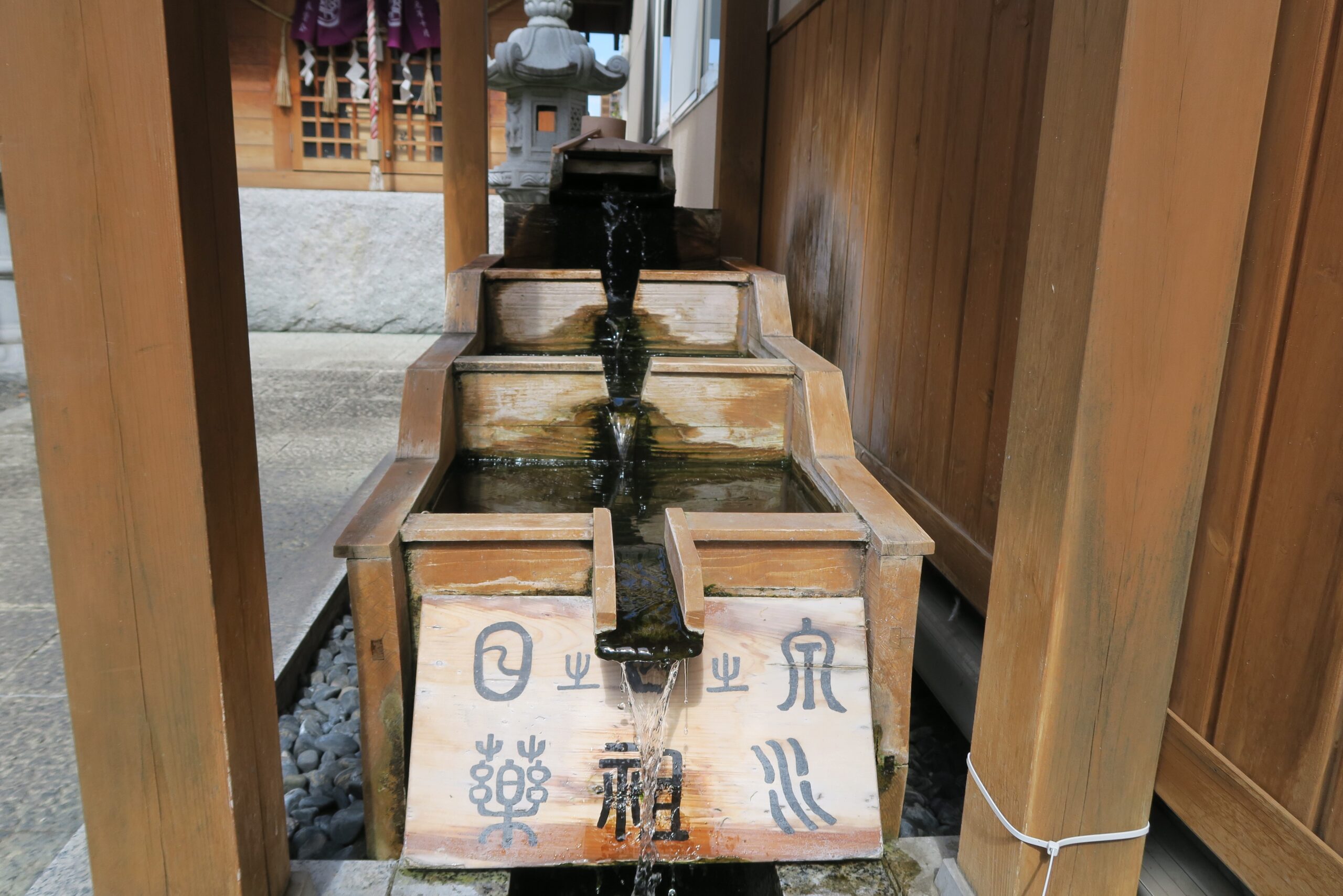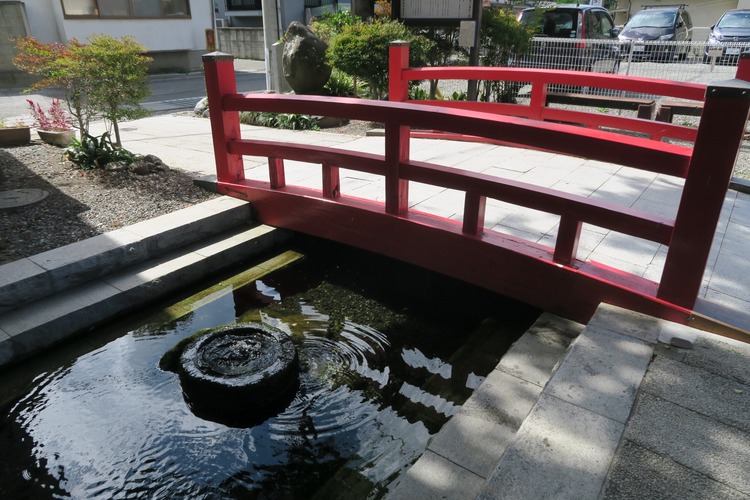 神社前に水汲み場がありますが、赤い橋の下を覗くと清らかな水がとめどなく湧いているのがわかります。