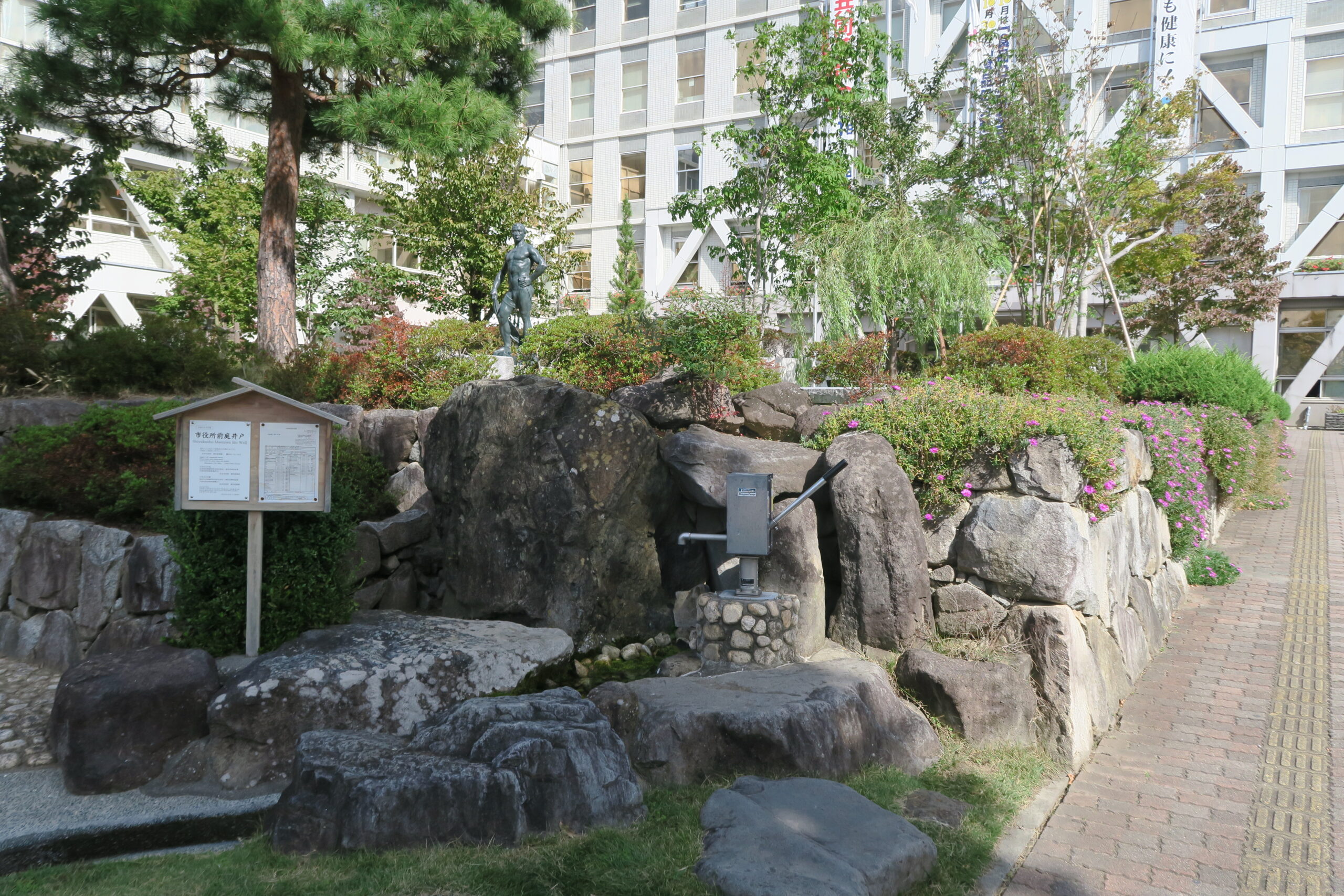 かつて井上デパートがあった場所が今の松本城大手門駐車場で、その対面にある西堀公園内に「西堀公園井戸」があります。明治時代、松本城の西の総堀を埋め立て作られ新しい町しく町ができ、この辺りを「西堀」と呼ばれています。「水めぐりの井戸整備事業」で平成20年(2008)に作られました。