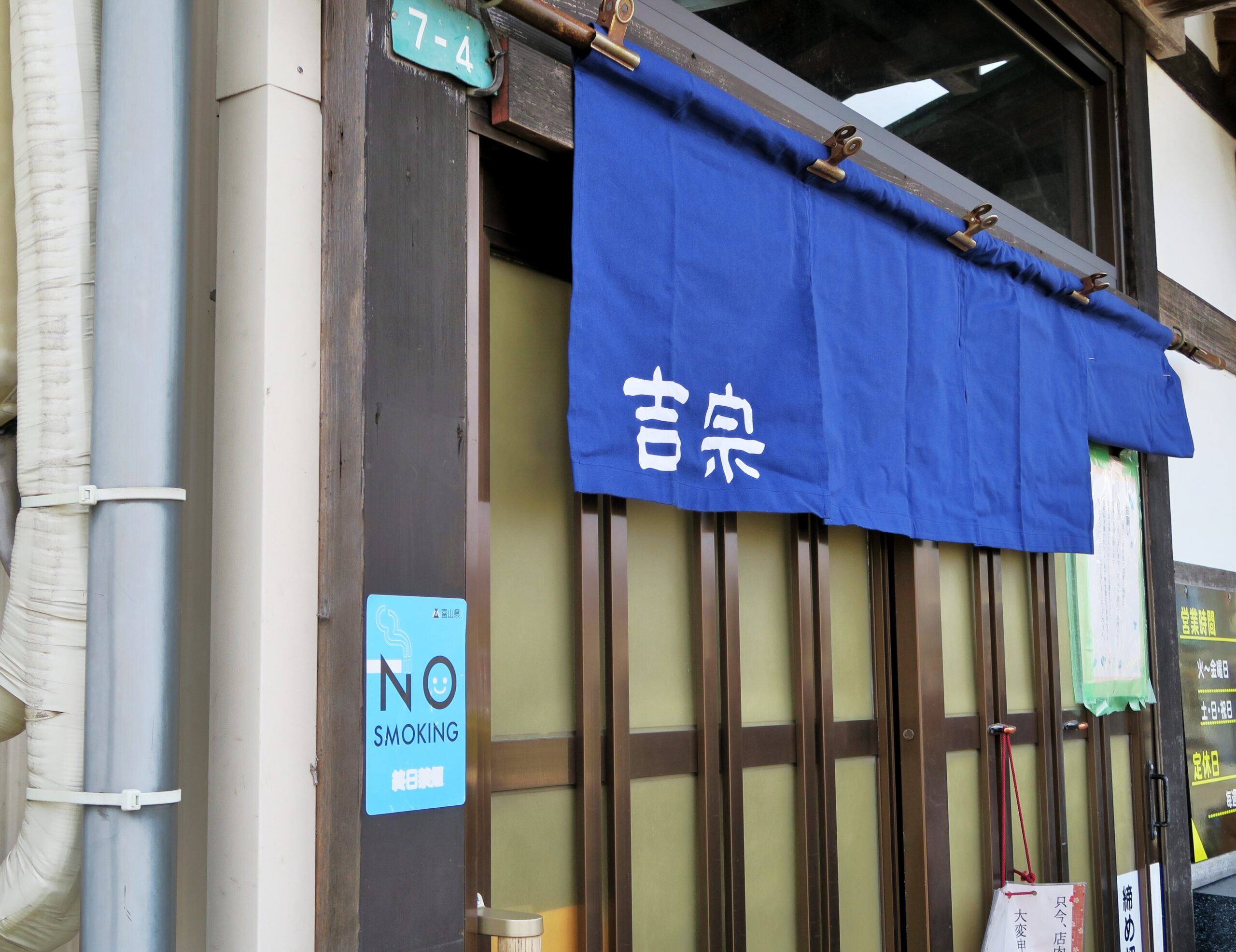 昼食は急患医療センター前からトラムに乗って志貴野中学校前で下車し、高岡で行列のできるカレーうどんの店「吉宗」に向かいます。11時の開店で時間はすでに11:30で行列がやはりできていました。お店の前に並び入口の中に入れれば名前を書いて待合椅子に座って名前を呼ばれるのを待ちます。