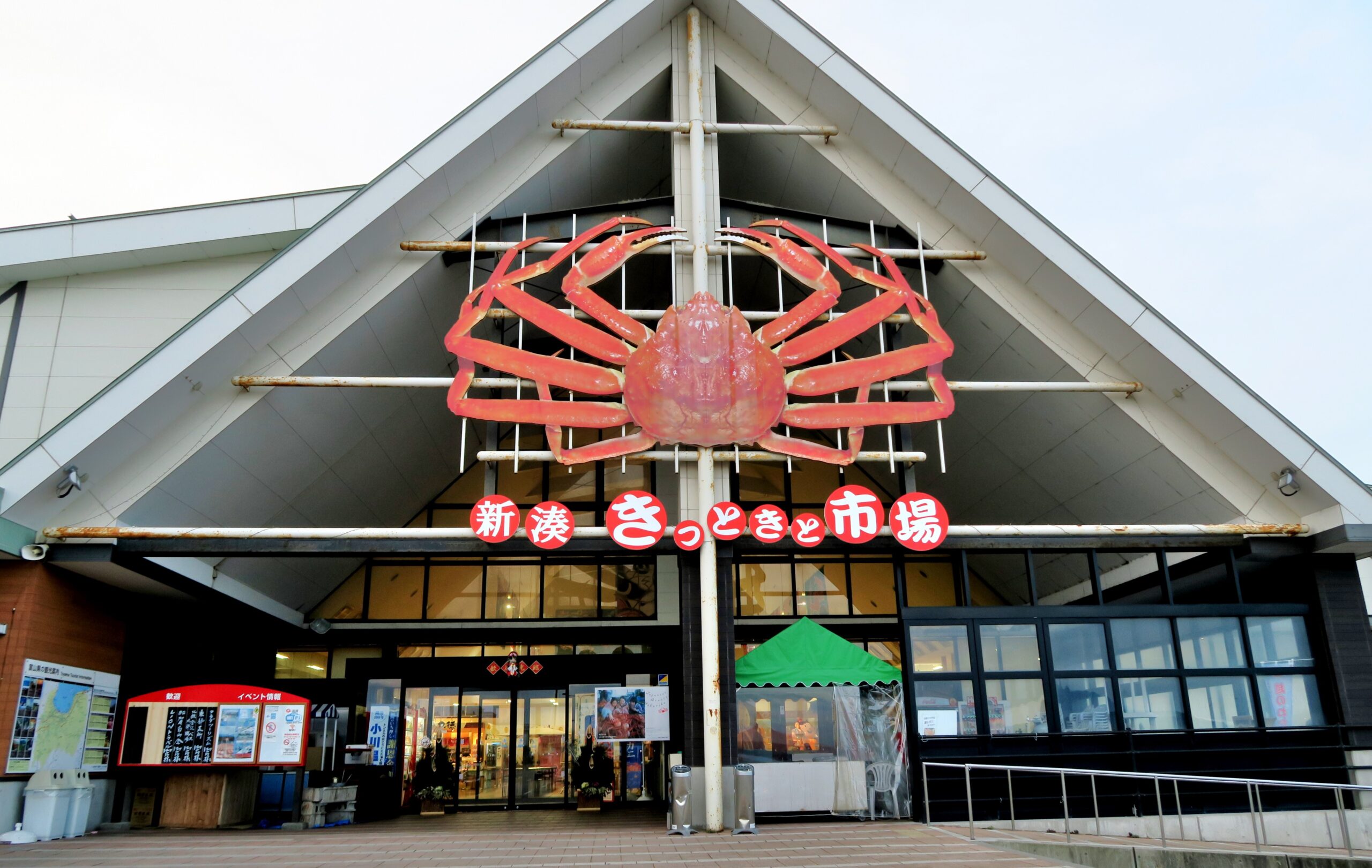海王丸パークに隣接するのが、飲食店や鮮魚店が数多く入る大型施設「新湊きっときと市場」です。朝獲れの魚が並ぶ鮮魚センターでは昆布締め作りやカニの見抜き体験が人気で、ここでしか食べられない白エビソフトなるものがあります。