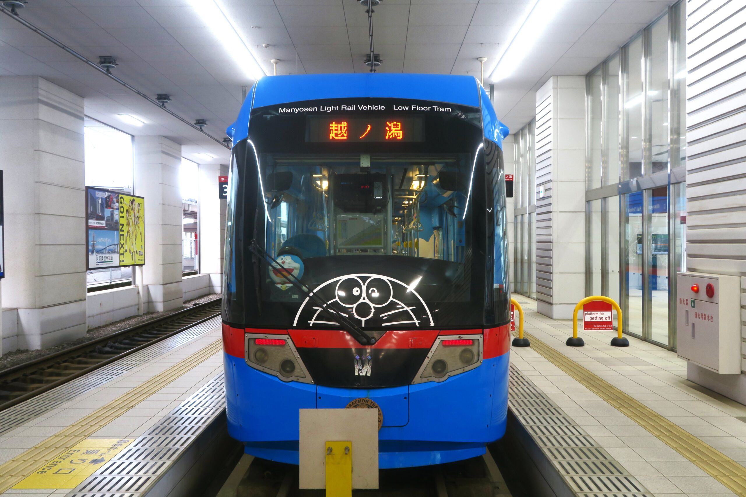 高岡駅に隣接する新高岡ステーションビルの一階にある万葉線乗り場へ。いよいよドラえもんトラムにのって高岡のまちなか散策にでかけます。ドラえもんトラムは、どこを撮っても写真映えすること間違いなしです。