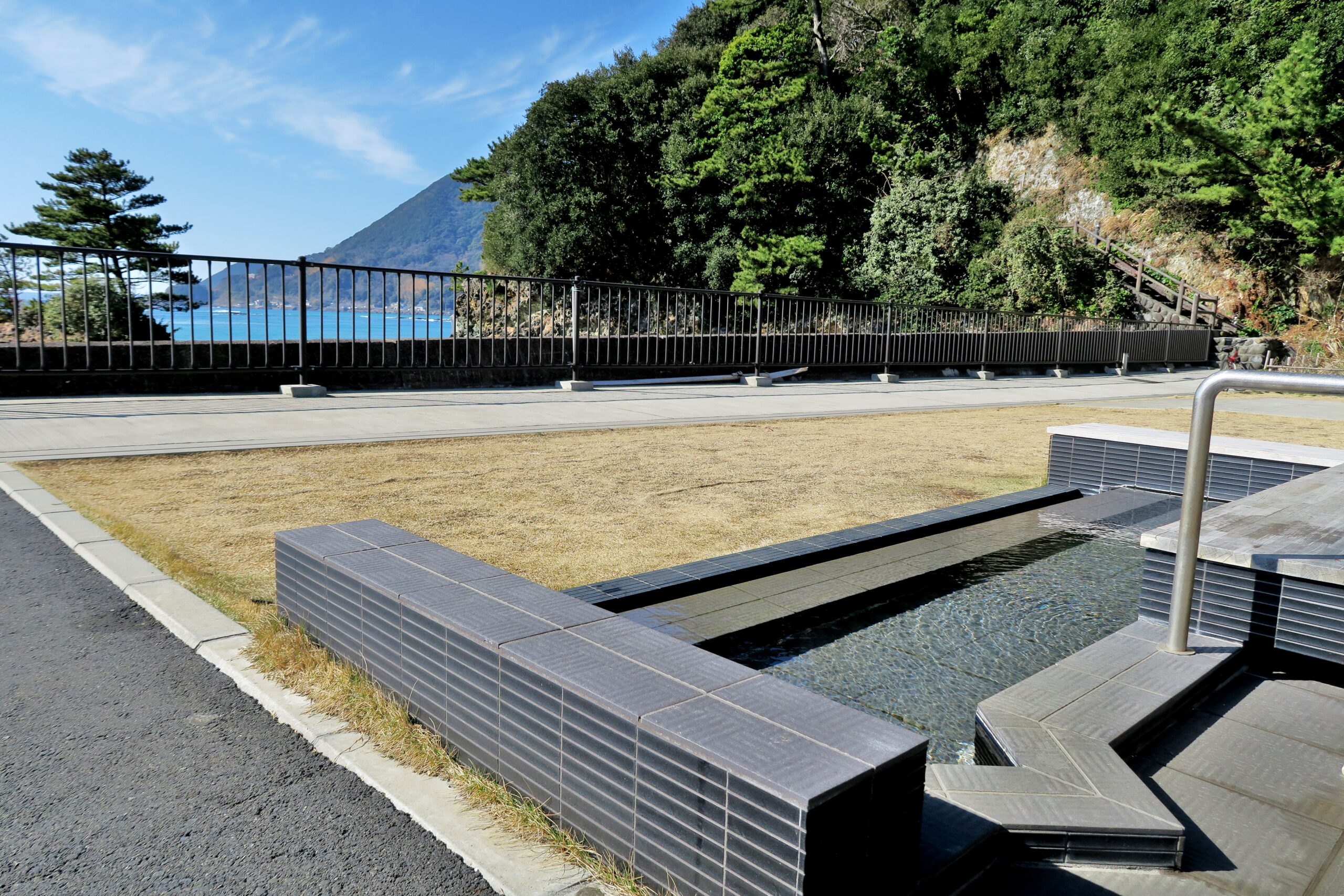 河津川沿いの散策路には3ヵ所足湯処がありますが、中でも河津浜近く、浜橋の手前にある足湯「河津三郎の足湯処」は、3つの足湯の中で、施設的にも、景色的にもおすすめです。