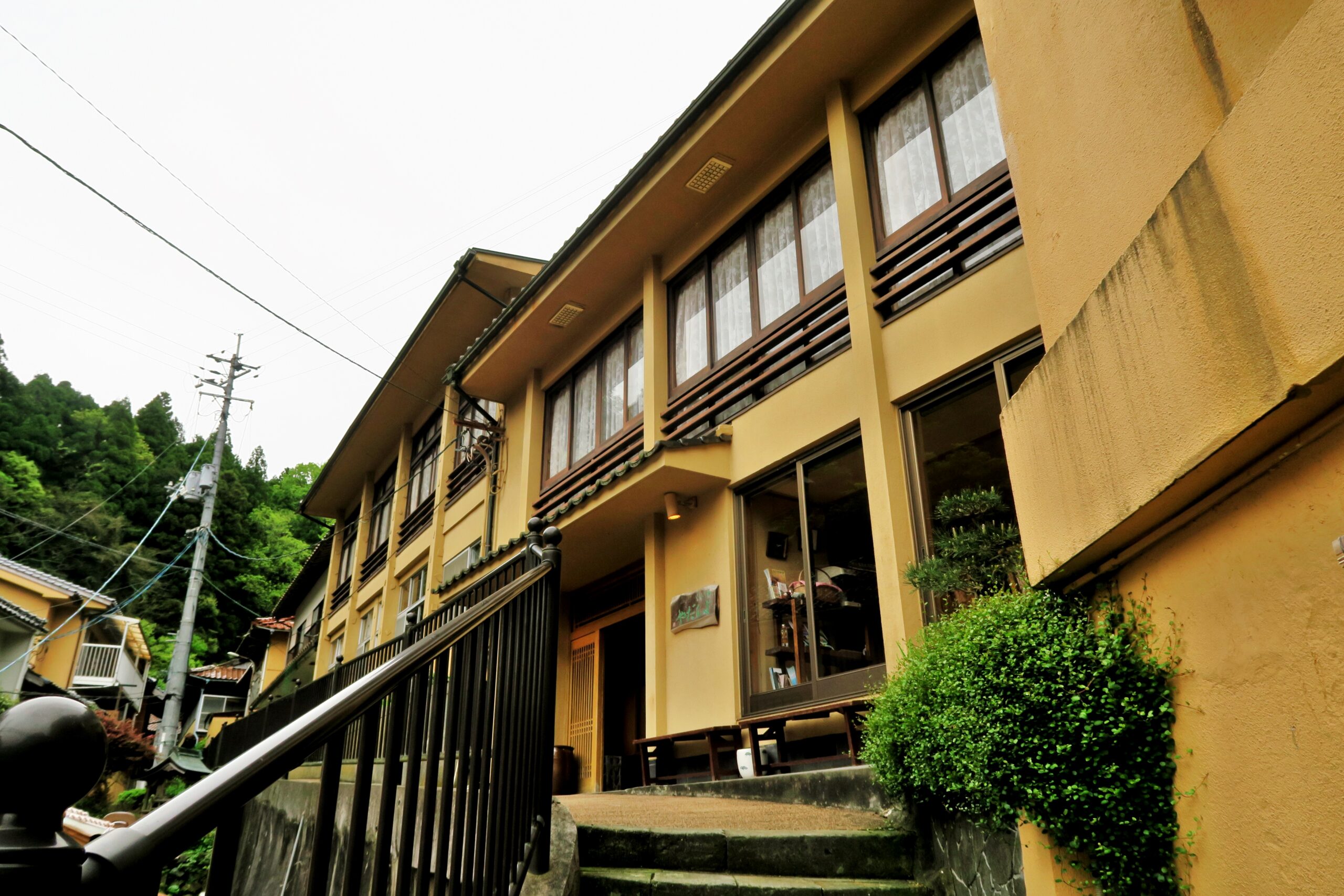 さほど広くない温泉街に宿や民家が密集し、今日のお宿「ありふく よしだや」は、有福温泉街の一番高台にある創業250年以上の老舗旅館です。一番のおすすめは敷地内から自然噴出のph9.1のトロトロした化粧水のような美肌の湯が源泉かけ流しで堪能できることです。