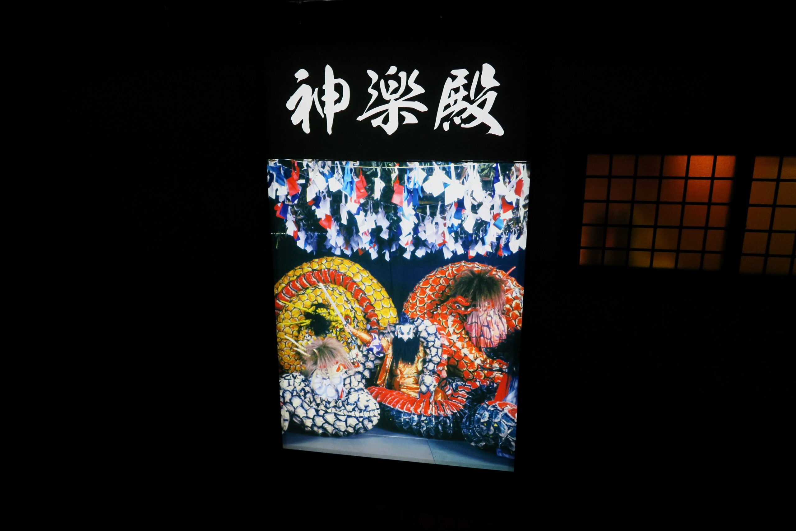 「大蛇」の見どころは何と言っても須佐之男命と大蛇との格闘シーンで、見るものを圧倒します。「湯の町神楽殿」は驚くような狭さなので、たまに大蛇の尾が頭の上に飛んでくることもあります。勇壮で迫力のある舞に心奪われること間違いなしです。
