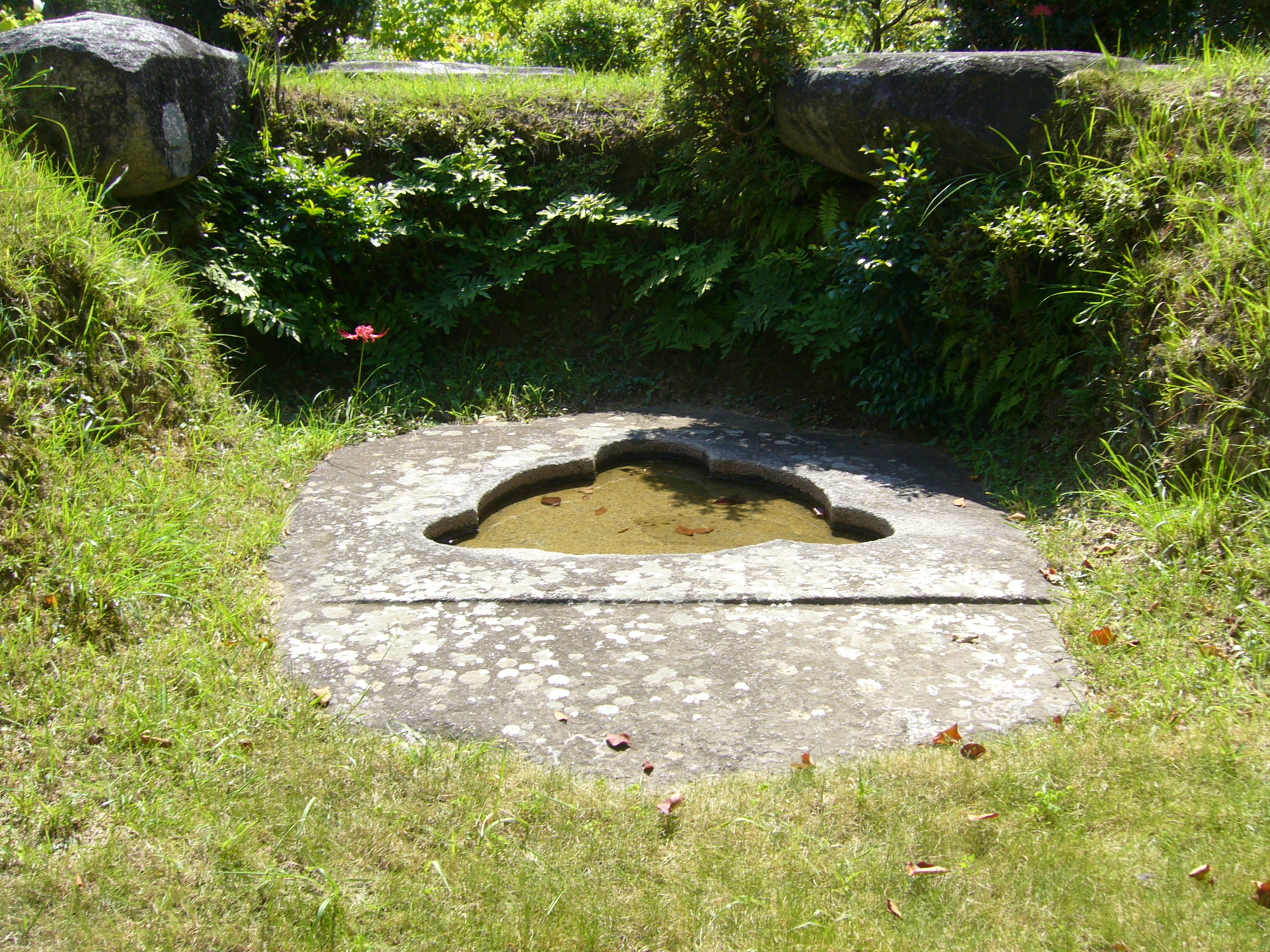 使われた石の総重量は約2300tと推定され、天井石は約77tにもなります。玄室は思った以上に広々とし、天井は見上げるほどで、高さは約4.7mあります。埋葬された人物は不明ですが、乙巳の変で滅ぼされた蘇我入鹿の祖父・蘇我馬子の墓ではないかといわれています。国営飛鳥歴史公園石舞台地区のこの一帯は「島庄」といわれ強大な権力を持っていた蘇我氏の居住地でした。自然の中に邸宅があるのが一般的だった当時、馬子はわざわざ庭園を造りそれゆえ「島の大臣(おとど)」といわれたといいます。石室が露出しているのは、馬子の専横ぶりに反発した後世の人が封土をはがしたためと伝わります。