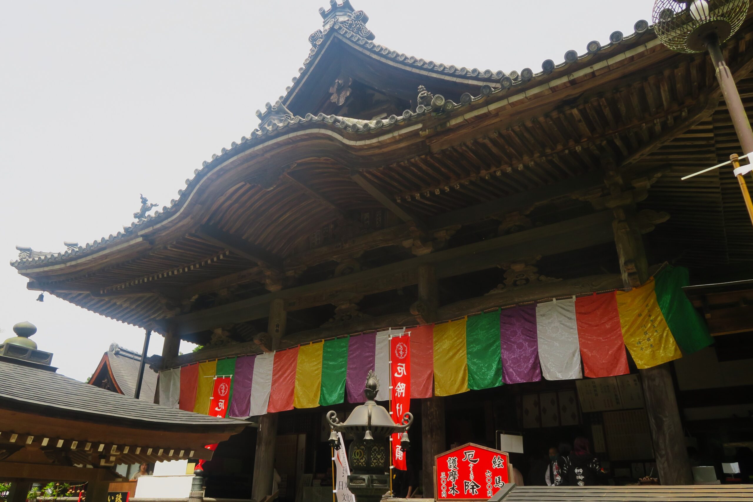 次の目的地は「岡寺」。明日香村の中心地が岡の集落で、石畳が敷かれた道の先に鳥居が見え、古い家々が並び立つ参道は急な坂道とあってひたすら上ります。仁王門手前のさらに急な上り坂を自転車を押して上りきると緑に包まれた境内が目に飛び込んできます。飛鳥時代末から奈良時代初めの創建と伝え、天武天皇の皇子である草壁皇子の岡宮を法相宗の義淵僧正が拝領して天智天皇の勅願により天智天皇2年(663)に創建されたのが厄除で有名「岡寺」で正式名称は東光山龍蓋寺といいます。