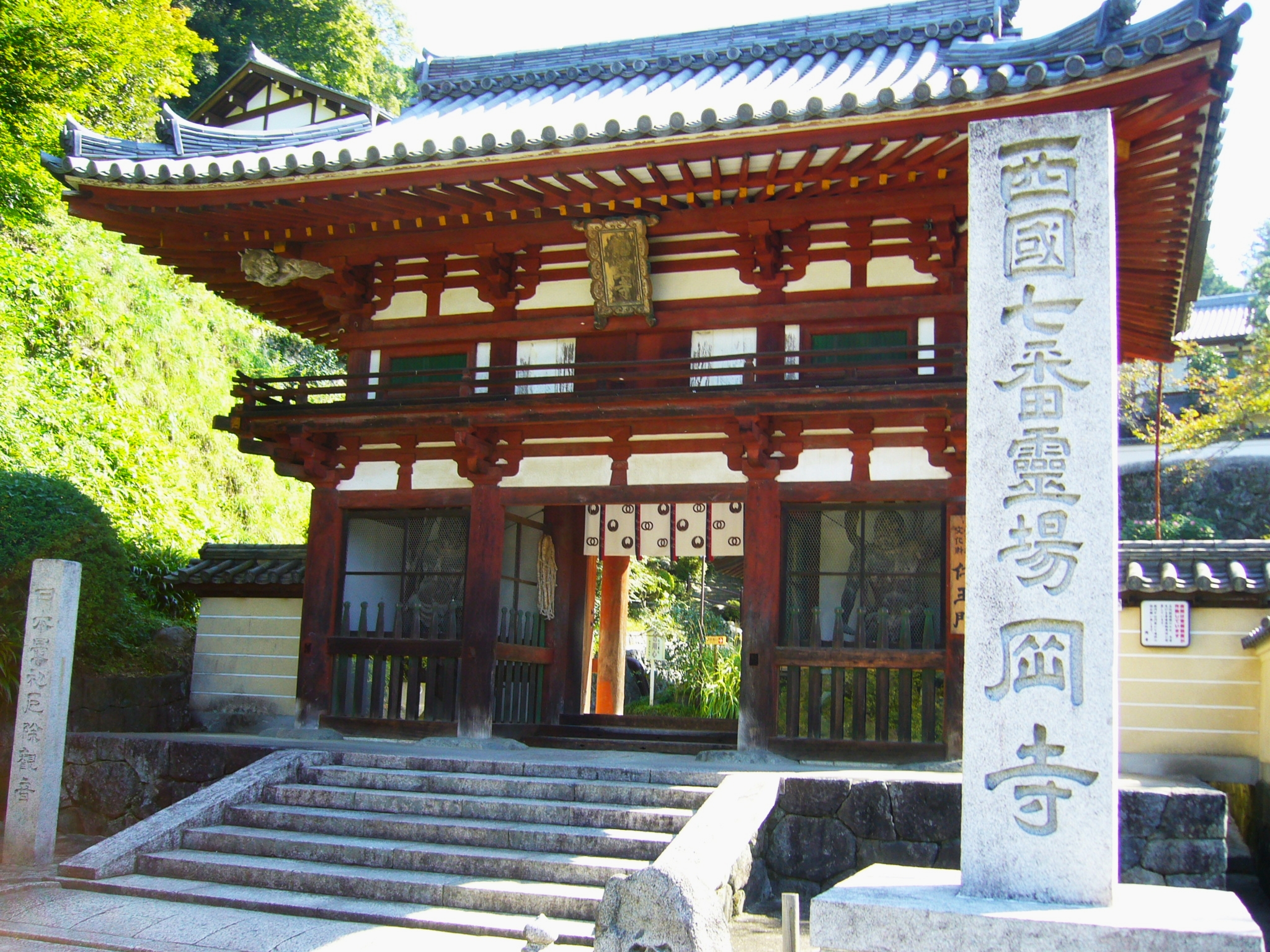 近畿圏を中心に2府5県の広がる観音霊場、西国三十三所は大和国長谷寺の開山・徳道上人が養老2年(718)に創設した日本最古の巡礼路といわれ、その道程は約1000kmにもおよびます。その西国三十三ヶ所第七番札所が岡寺です。日本最初の厄除け霊場で歴史物語『水鏡』にも記載があります。厄除け観音として信仰を集める岡寺参詣の最大の魅力は、なんといってもご本尊の如意輪観音菩薩坐像(重要文化財)です。弘法大師の手になるという、日本、中国、インドの土で造ったとされる高さ約4.85m、日本最大の塑像は、奈良時代末期の作といわれ、くっきりとした目鼻立ちの豊満なお顔が、中国唐代の仏像に通ずるところです。