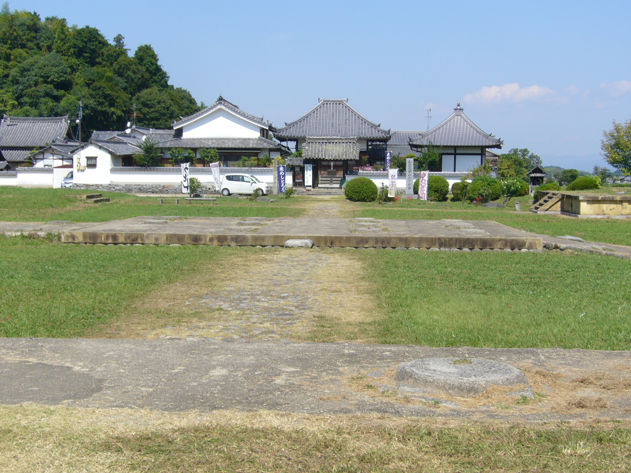県道155号に出て「橘寺」に向かいます。ここまで約10kmを寄り道しながら3時間ちょっと走ってきたことになります。橘寺の向かいに川原寺跡があり先に「川原寺跡」に寄ることにしました。川原寺は弘福寺とも称され、天武朝には飛鳥寺、本薬師寺、大官大寺とともに飛鳥四大寺に数えられ、斉明天皇の冥福を祈り、斉明天皇の居住した川原宮を息子の天智天皇が寺に改めたものと言われていますが、未だ創建については謎が多く残されている寺です。現在は弘福寺が川原寺からの法灯を繋いでいます。中金堂跡に川原寺という小寺が残り、中が食事処になっています。