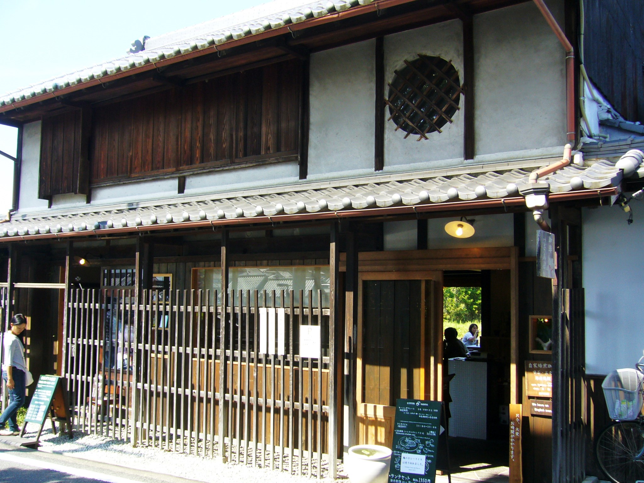 時間はとっくに12時半を過ぎ、走り疲れも出てきた頃、明日香村役場のまん前にある、昭和3年(1928)築の民家を改装した喫茶店「珈琲さんぽ」にとびこみます。自家焙煎の豆を一杯ずつハンドドリップしてつくるこだわりのコーヒーが飲める明日香村の小さな珈琲店です。飲んだあとに心地いい余韻が残る上品な味わいがひかります。