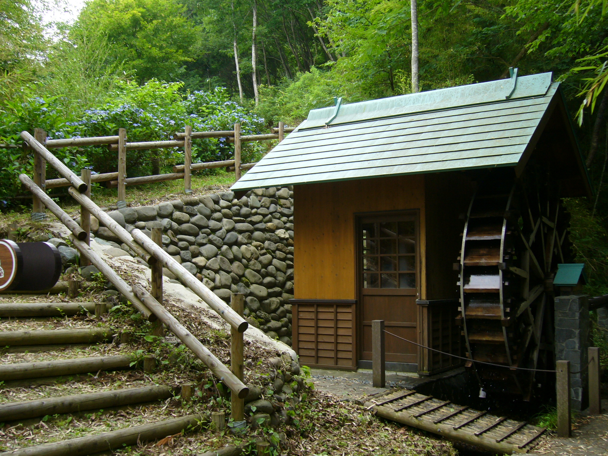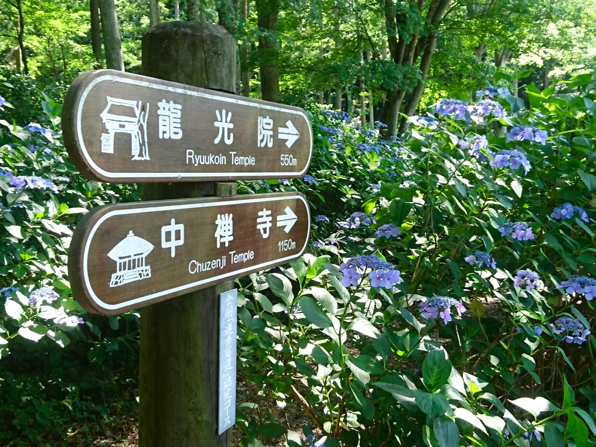 「あじさい小径」のあじさいの色がさらに濃くなり、足取りも軽くなります。