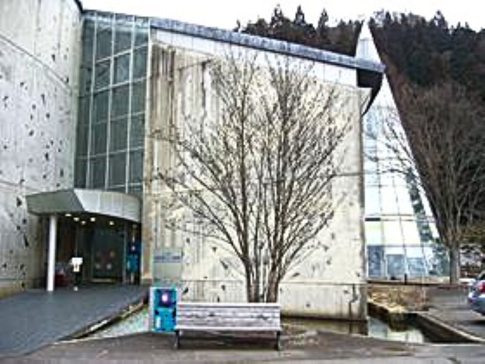 山ノ内町上林温泉入口にあるのが1998年の長野冬季オリンピックの開催を記念して、その前年の1997年にオープンした「志賀高原ロマン美術館」。地獄谷野猿公苑、上林温泉の入口にある建物は、1960年代より“共生の思想”を唱え、自然との共生に重点を置いた建築を数多く手掛ける世界的な建築家・黒川紀章氏による設計です。「自然との共生」をテーマに周囲の杉林や太陽の動きといった志賀高原の自然と文化に見事に調和し、展示ケースやドアノブに至るまで細部にわたり綿密に計算されています。