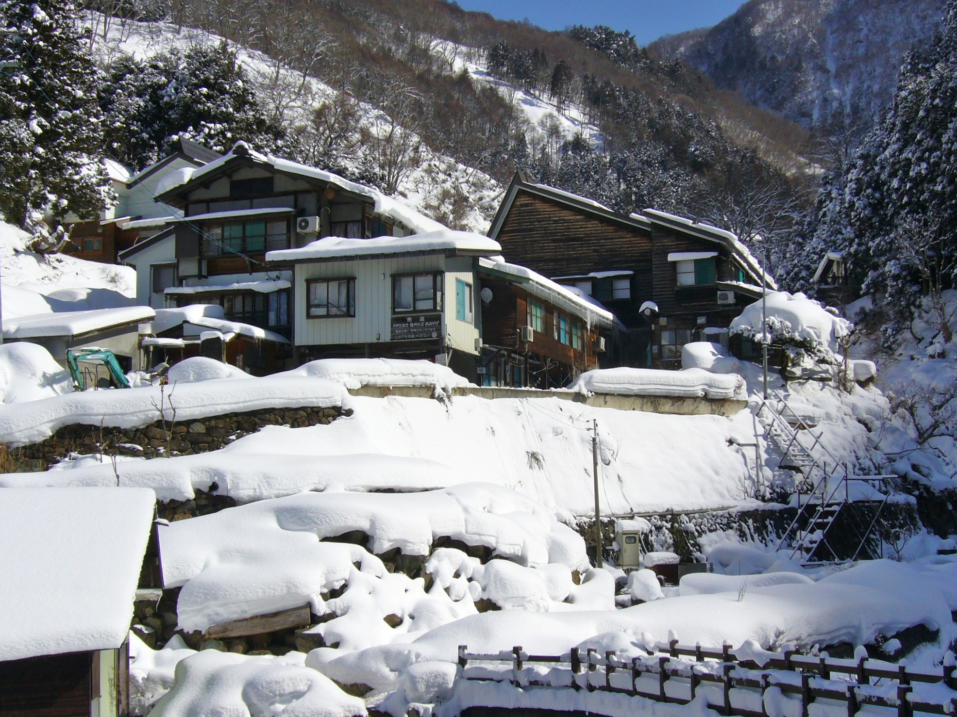 上林温泉から志賀高原の竜王山(標高1900m)に源を発する横湯川沿いを歩くこと30分、突然視界が広がり、川べりに建つ木造の温泉宿にたどり着く。地獄谷後楽館は、江戸時代末期創業。横湯川の渓流沿いに立つ鄙びた趣の一軒宿で文化人に愛されてきた宿でもる。昭和8年(1933)、“囲碁の神様”と尊敬された木谷實と呉清源が逗留し、新布石法を発案したり、そのものずばり木谷や呉清源をモデルにした小説『名人』を書いた川端康成をはじめ、夏目漱石、斎藤茂吉、棟方志功など、訪れた文人墨客は数えきれない。松谷みよ子が児童文学の名作を執筆した客室「龍の子太郎の間」も残る。玄関前には2003年に建てられた「新布石発祥の地」の石碑があります。