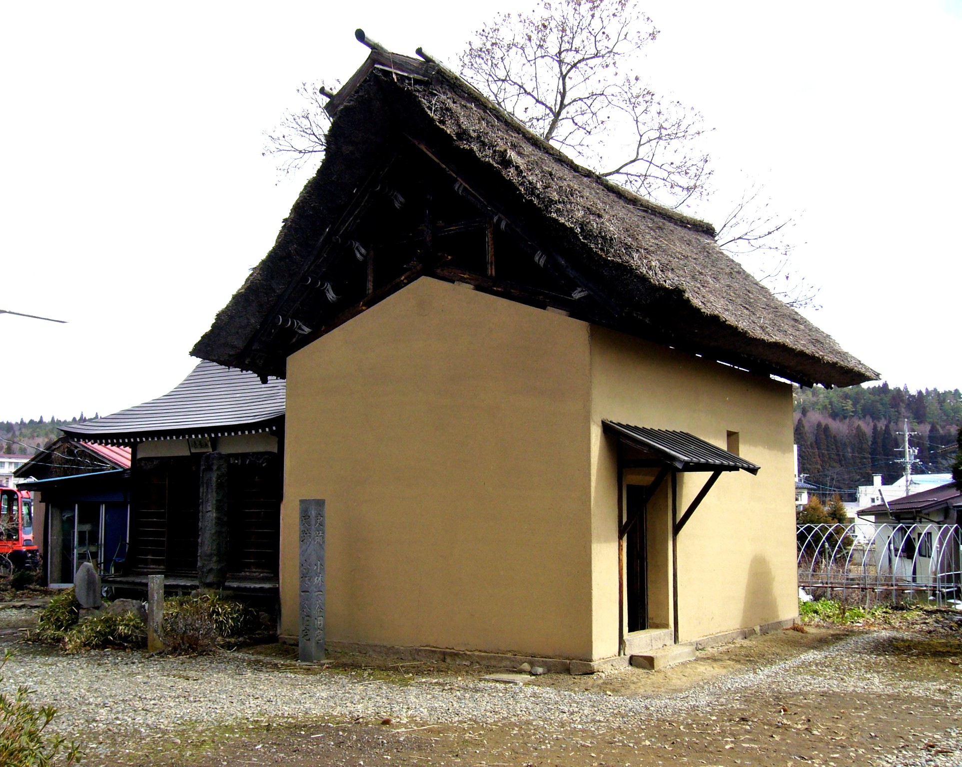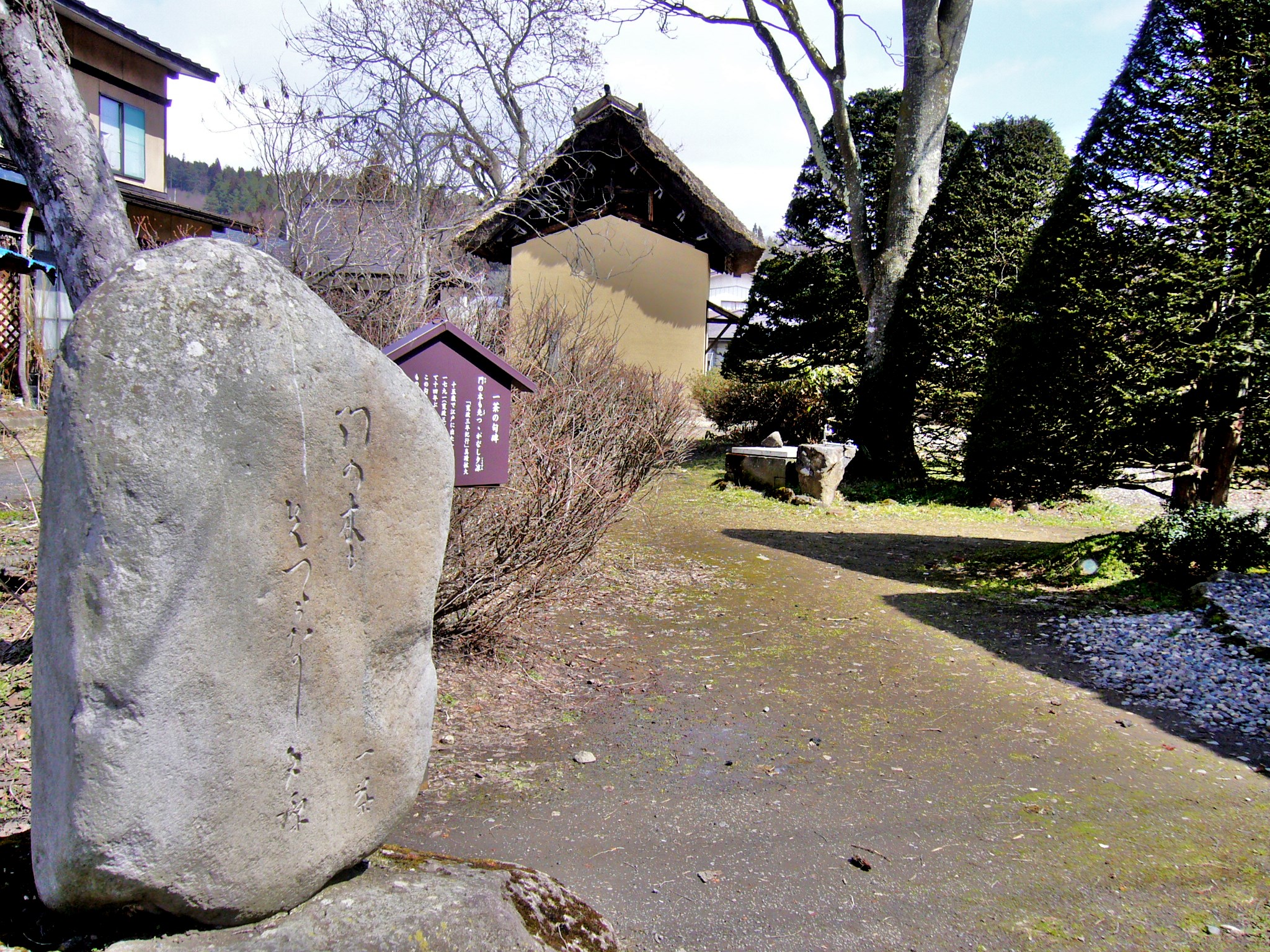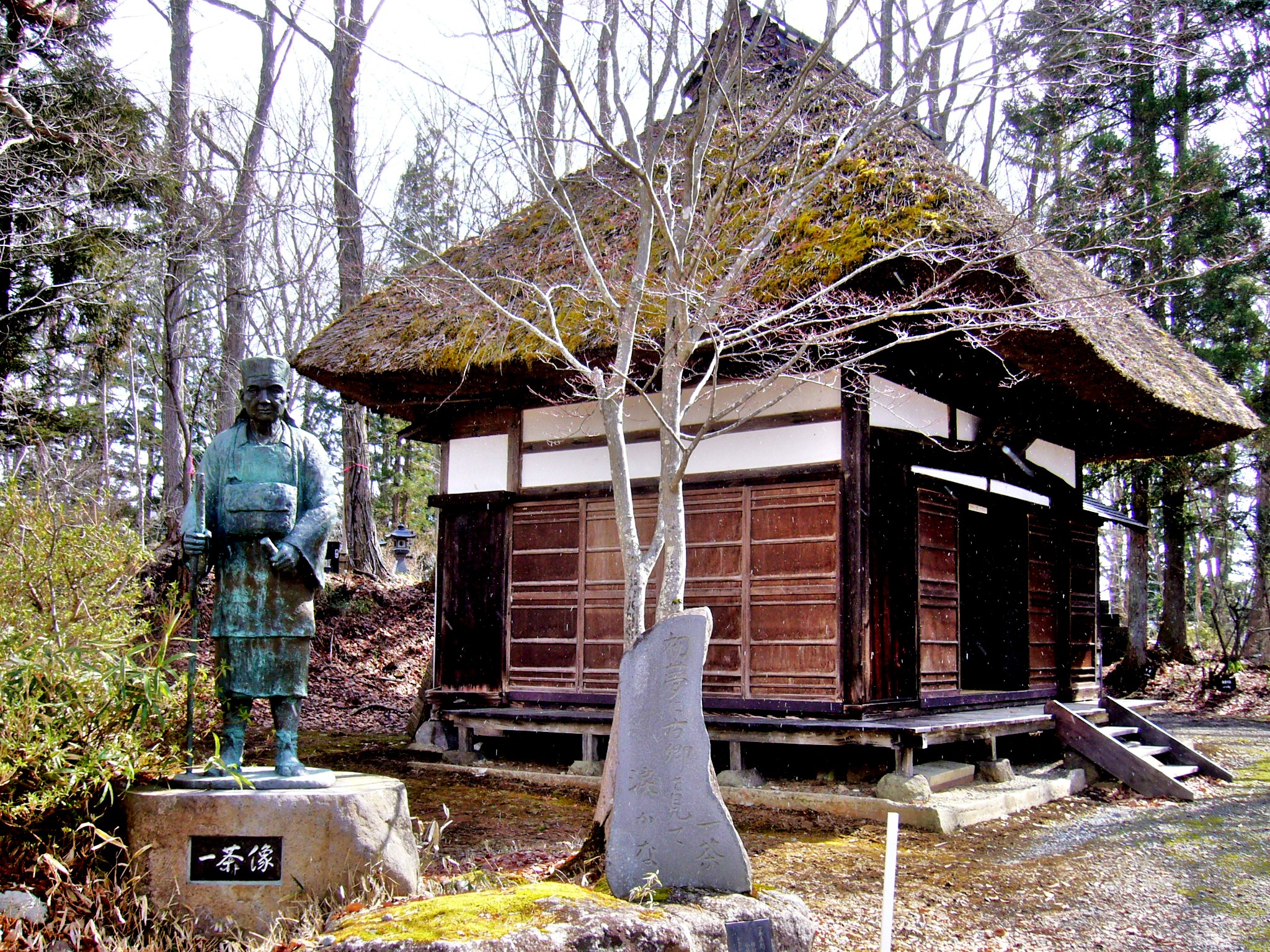 一茶の生家があった場所には、一茶が最後を過ごした土蔵と、一茶の時代を伝える茅葺き屋根の弟宅があり、旧宅は、国史跡に指定されています。